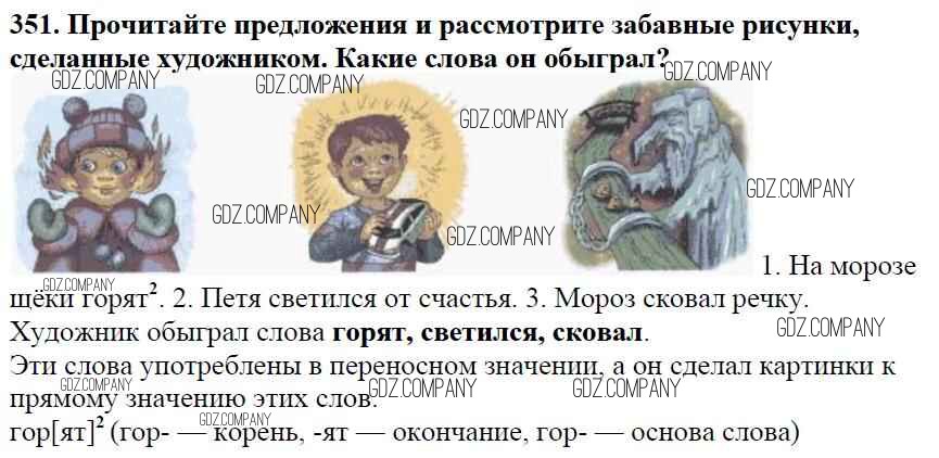 Здесь готовые ответы по Русскому языку за 5 (пятый) класс от Баранов, Ладыженская, Тростенцова, Кулибаба, Григорян Учебник (издательство: Просвещение от 2016 г.) № 351
