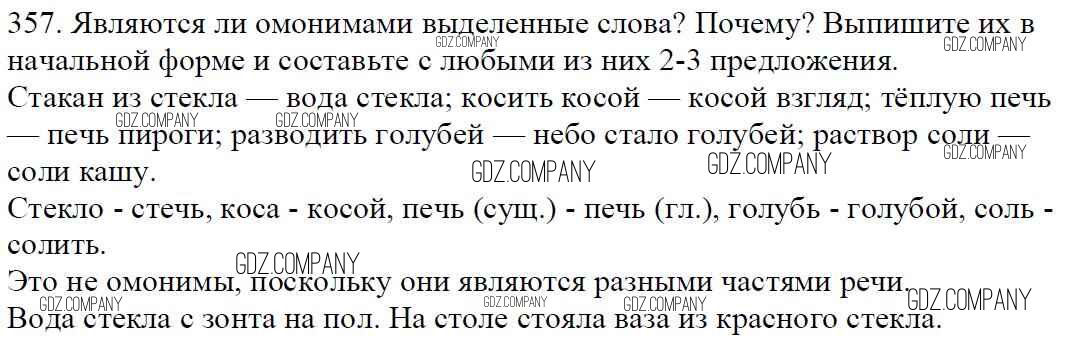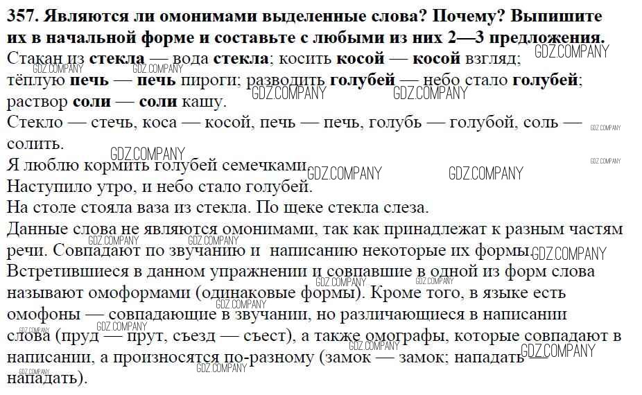 Здесь готовые ответы по Русскому языку за 5 (пятый) класс от Баранов, Ладыженская, Тростенцова, Кулибаба, Григорян Учебник (издательство: Просвещение от 2016 г.) № 357
