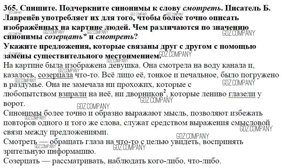 Здесь готовые ответы по Русскому языку за 5 (пятый) класс от Баранов, Ладыженская, Тростенцова, Кулибаба, Григорян Учебник (издательство: Просвещение от 2016 г.) № 365
