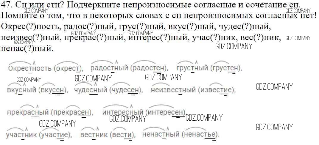 Здесь готовые ответы по Русскому языку за 5 (пятый) класс от Баранов, Ладыженская, Тростенцова, Кулибаба, Григорян Учебник (издательство: Просвещение от 2016 г.) № 47