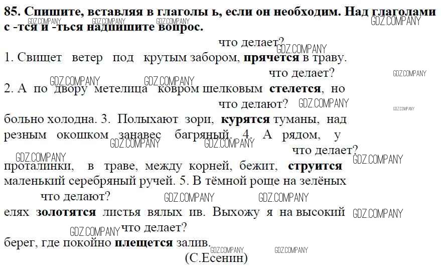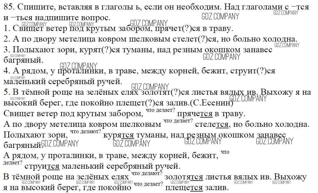Здесь готовые ответы по Русскому языку за 5 (пятый) класс от Баранов, Ладыженская, Тростенцова, Кулибаба, Григорян Учебник (издательство: Просвещение от 2016 г.) № 85