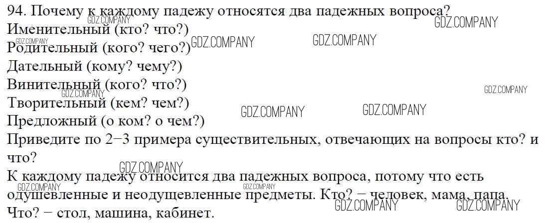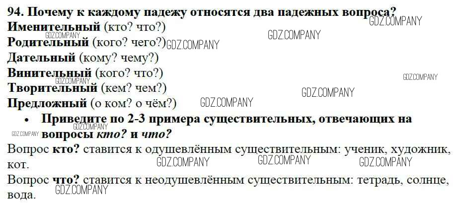 Здесь готовые ответы по Русскому языку за 5 (пятый) класс от Баранов, Ладыженская, Тростенцова, Кулибаба, Григорян Учебник (издательство: Просвещение от 2016 г.) № 94