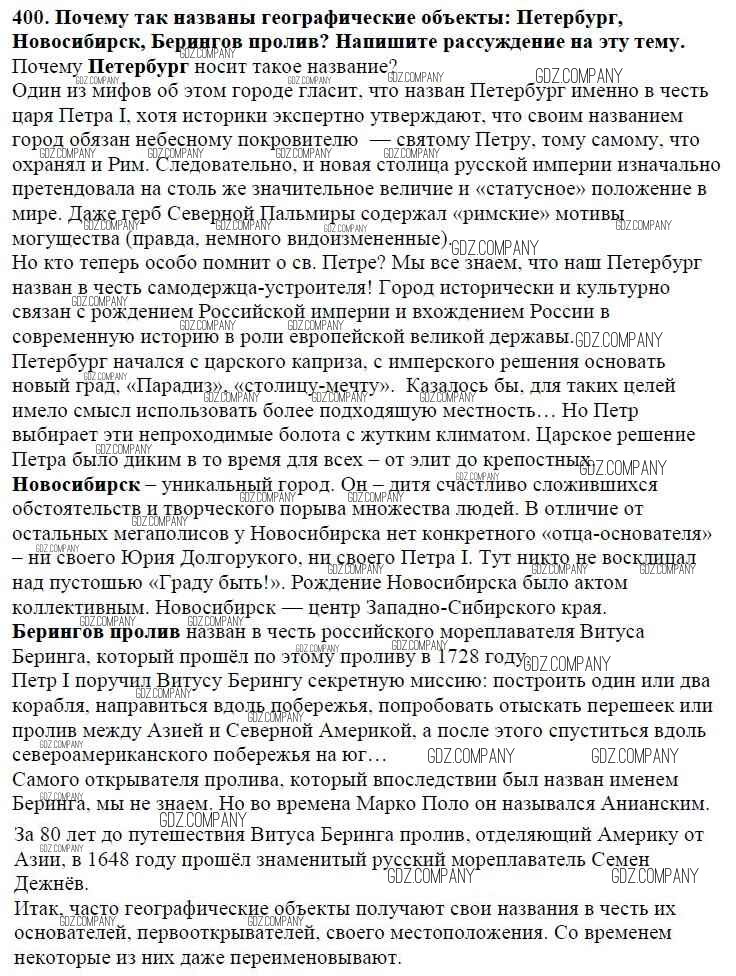 Здесь готовые ответы по Русскому языку за 5 (пятый) класс от Баранов, Ладыженская, Тростенцова, Кулибаба, Григорян Учебник (издательство: Просвещение от 2016 г.) № 400