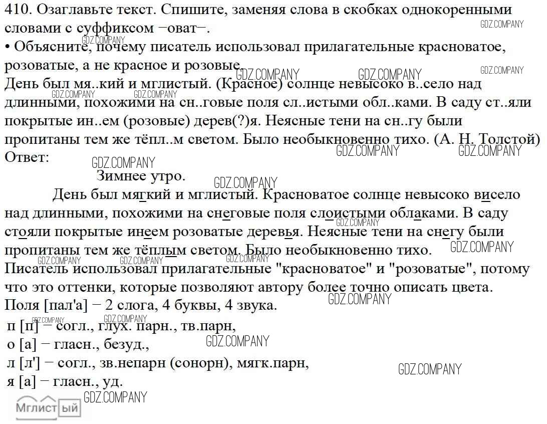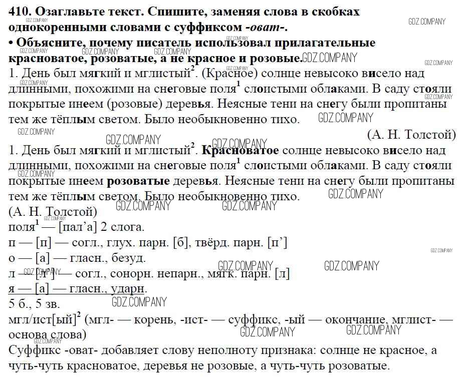 Здесь готовые ответы по Русскому языку за 5 (пятый) класс от Баранов, Ладыженская, Тростенцова, Кулибаба, Григорян Учебник (издательство: Просвещение от 2016 г.) № 410