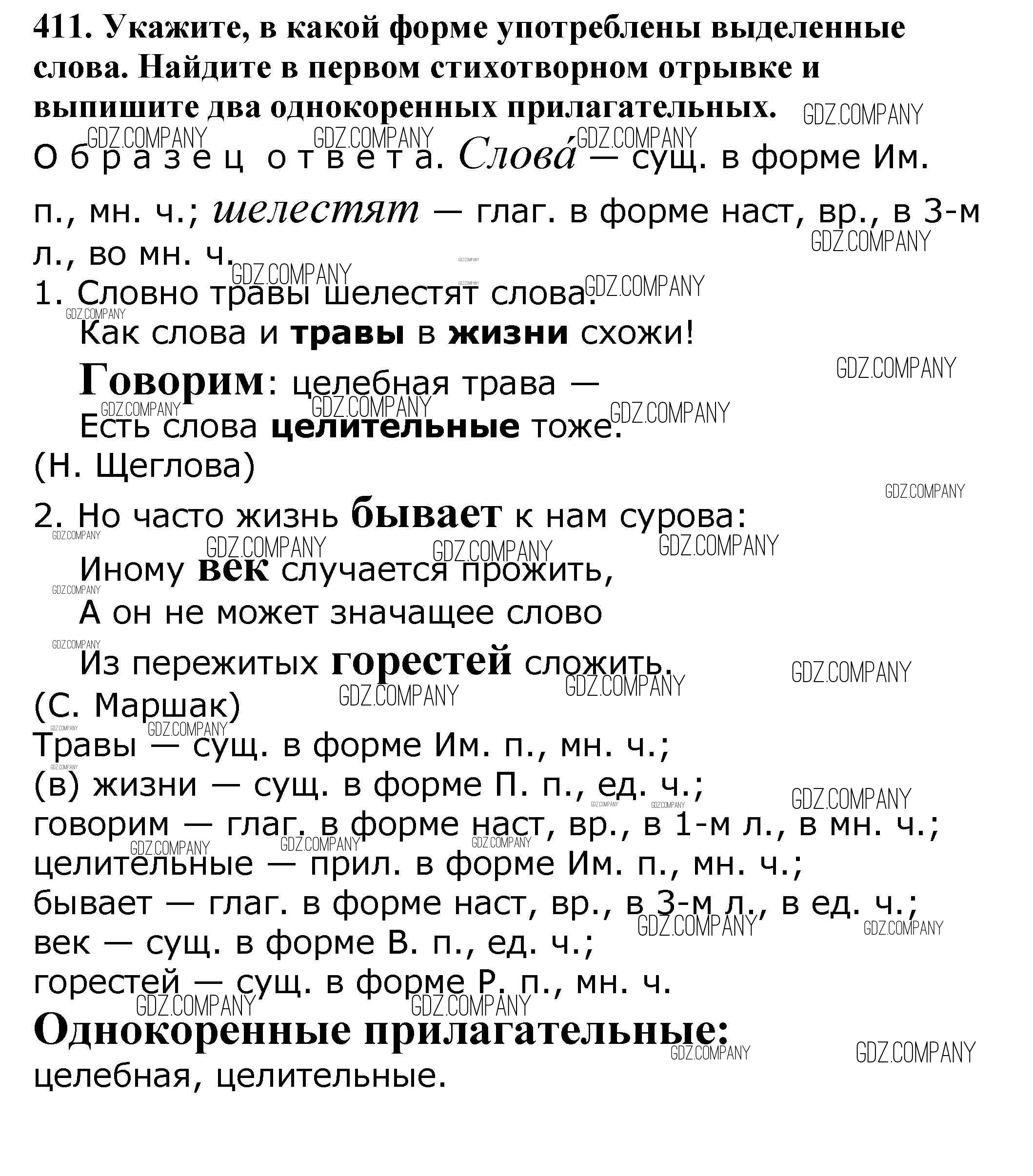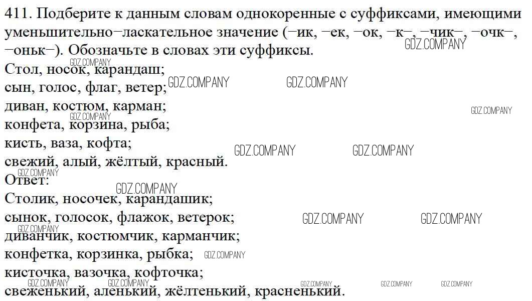 Здесь готовые ответы по Русскому языку за 5 (пятый) класс от Баранов, Ладыженская, Тростенцова, Кулибаба, Григорян Учебник (издательство: Просвещение от 2016 г.) № 411