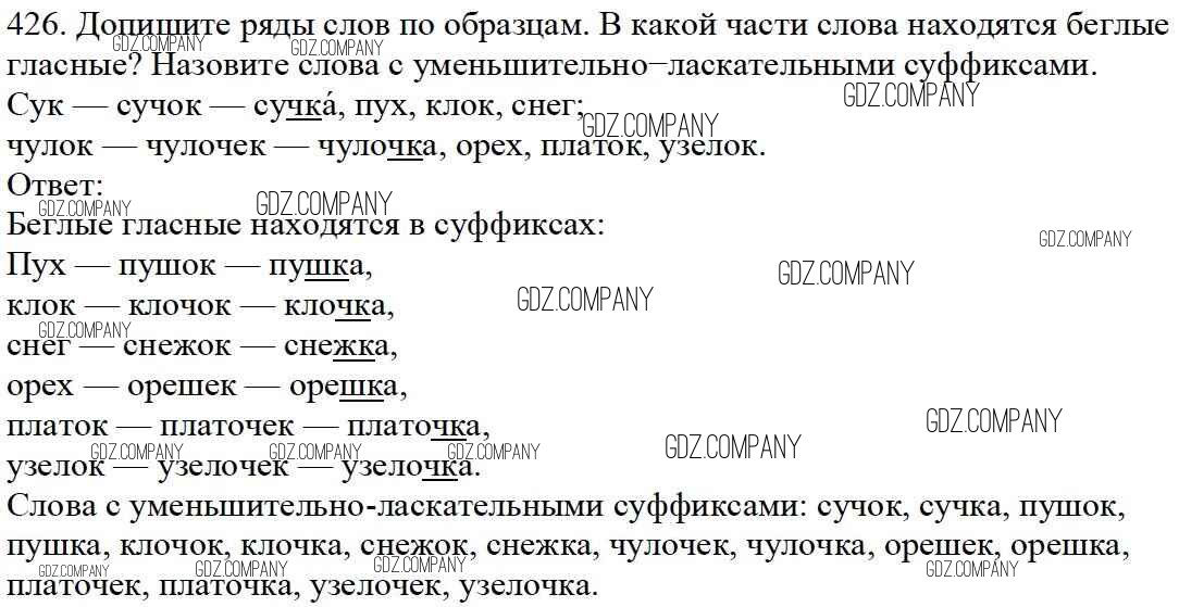 Здесь готовые ответы по Русскому языку за 5 (пятый) класс от Баранов, Ладыженская, Тростенцова, Кулибаба, Григорян Учебник (издательство: Просвещение от 2016 г.) № 426