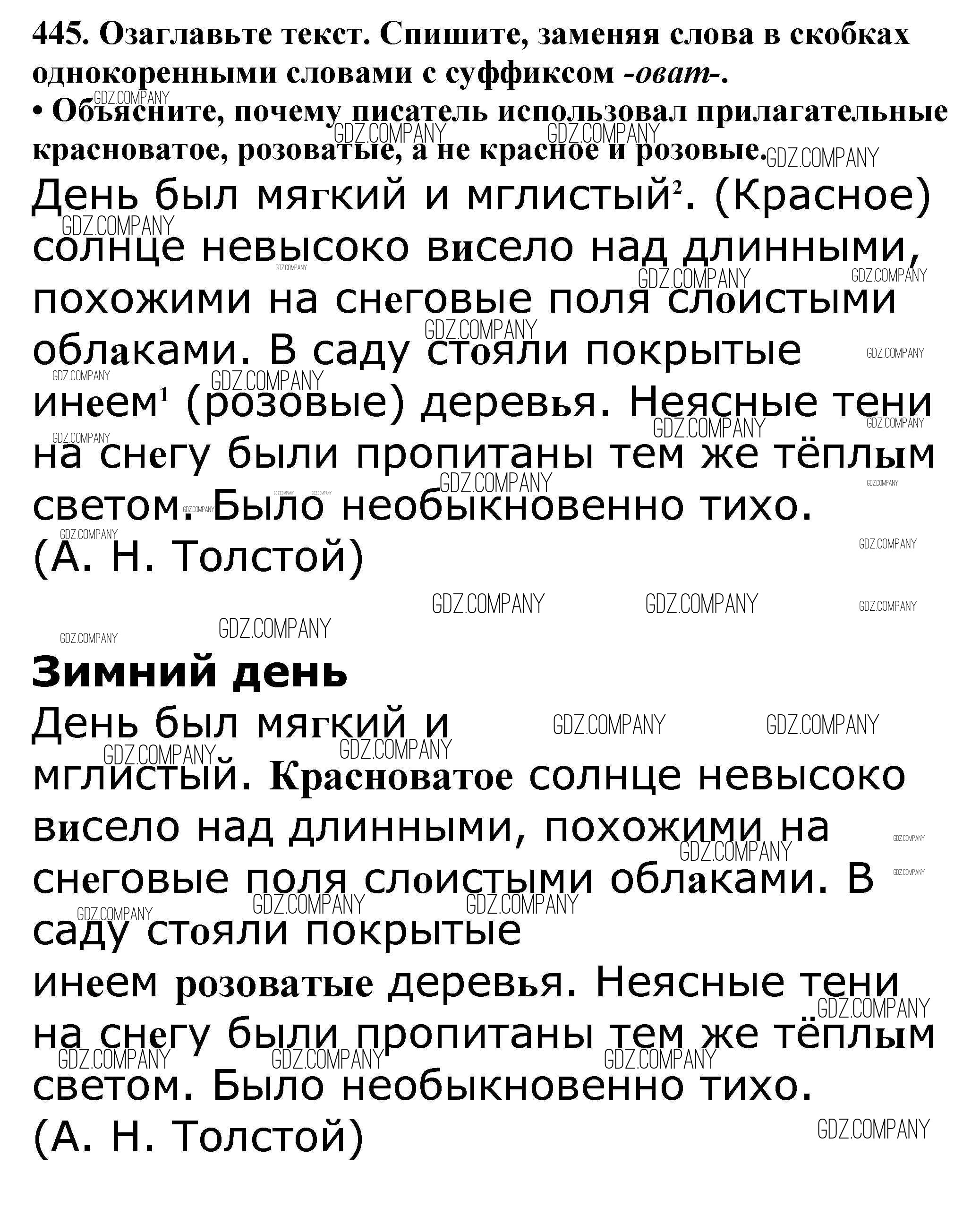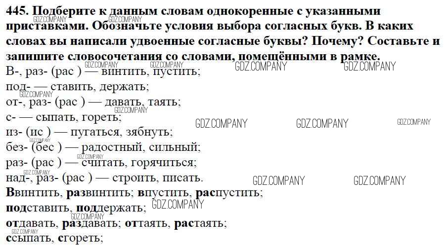 Здесь готовые ответы по Русскому языку за 5 (пятый) класс от Баранов, Ладыженская, Тростенцова, Кулибаба, Григорян Учебник (издательство: Просвещение от 2016 г.) № 445