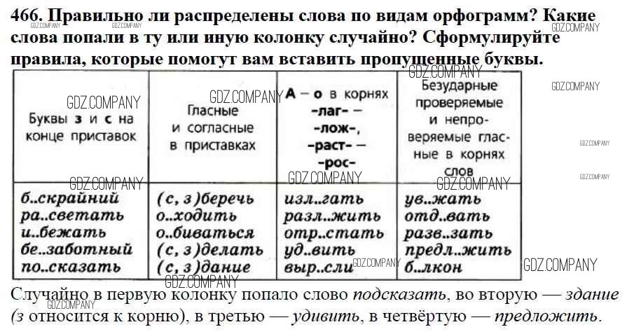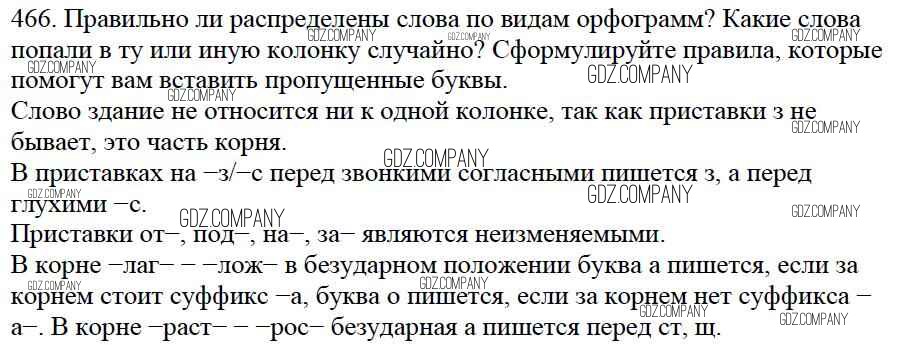 Здесь готовые ответы по Русскому языку за 5 (пятый) класс от Баранов, Ладыженская, Тростенцова, Кулибаба, Григорян Учебник (издательство: Просвещение от 2016 г.) № 466