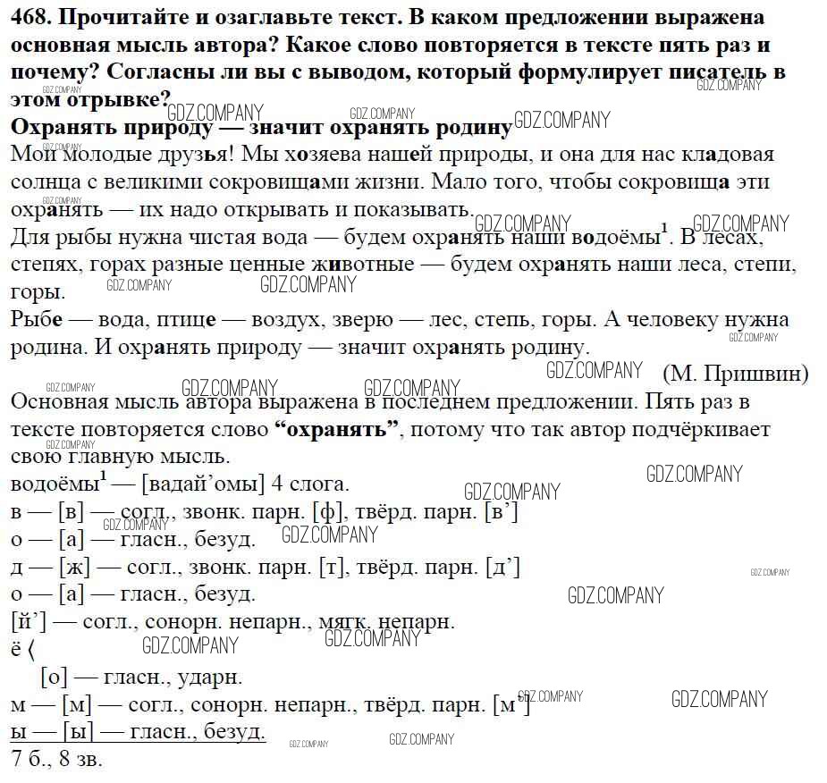 Здесь готовые ответы по Русскому языку за 5 (пятый) класс от Баранов, Ладыженская, Тростенцова, Кулибаба, Григорян Учебник (издательство: Просвещение от 2016 г.) № 468