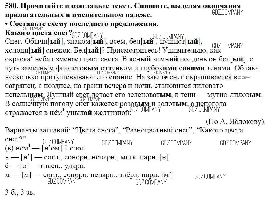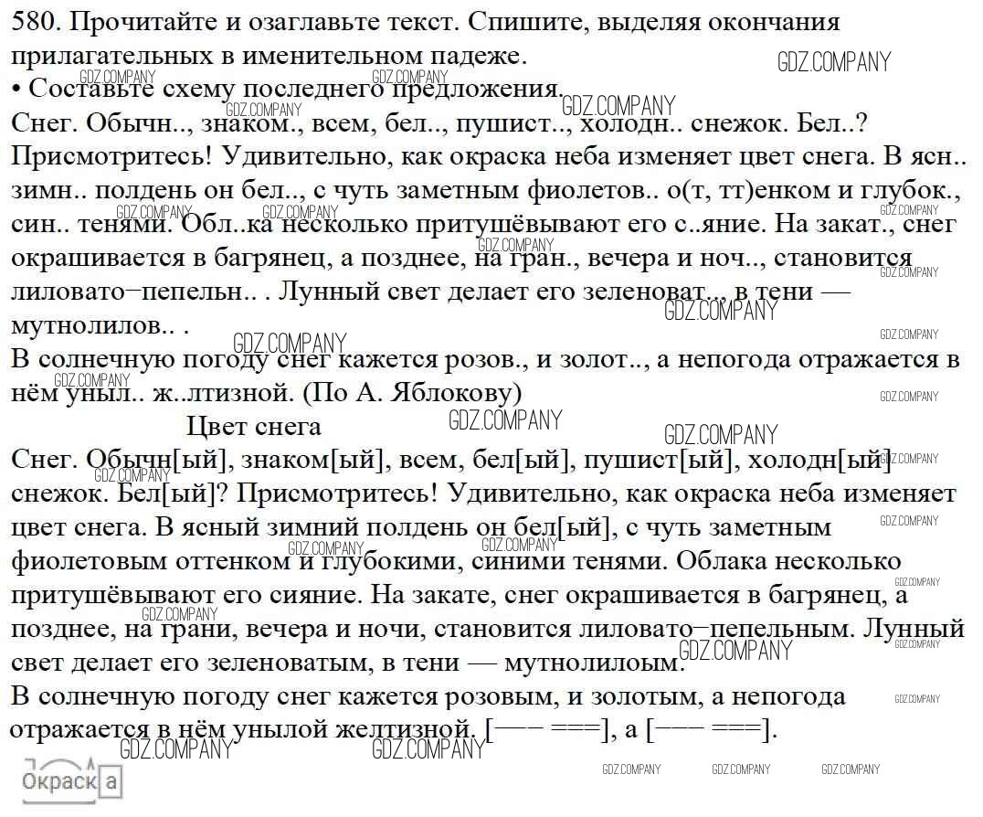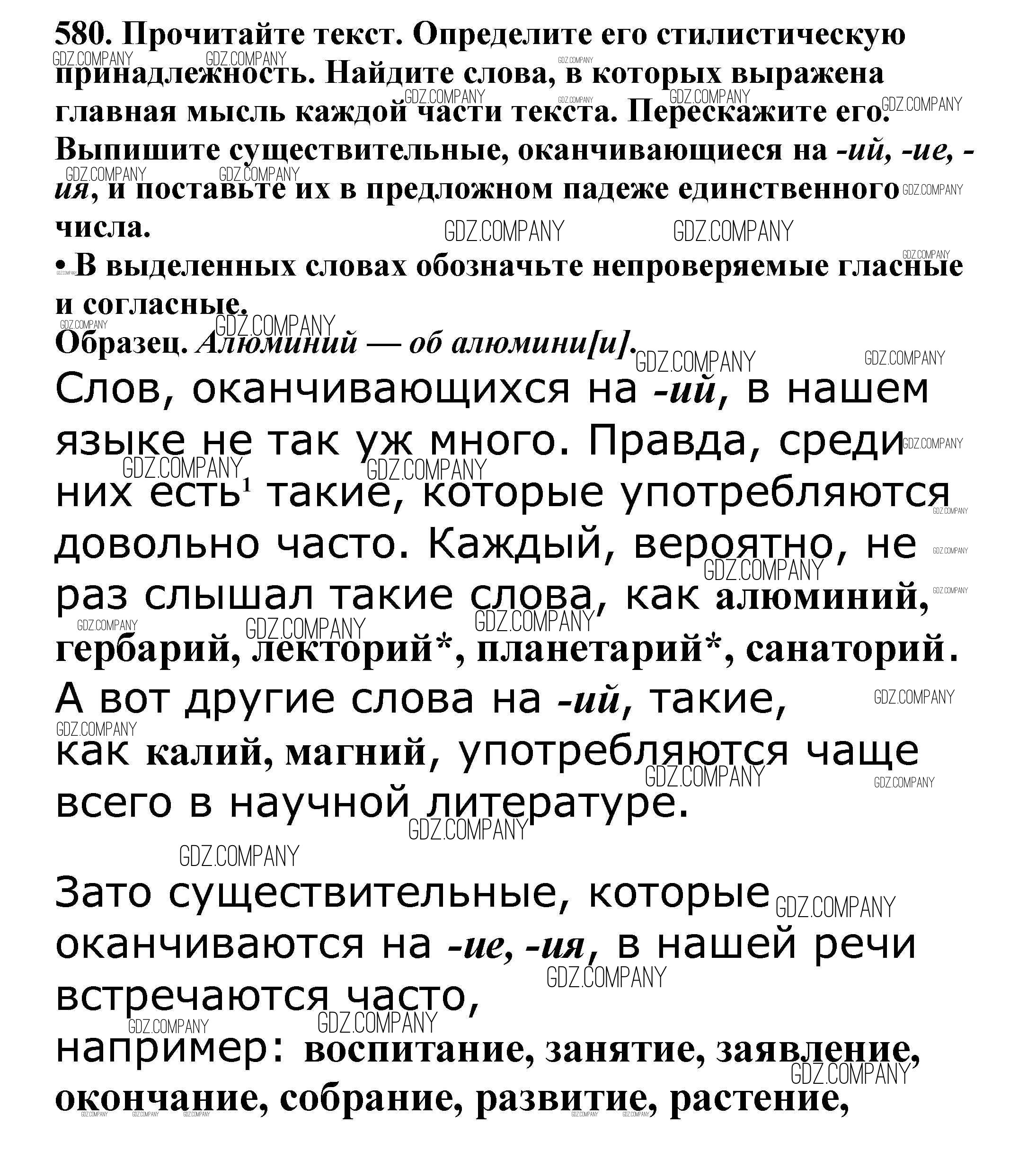 Здесь готовые ответы по Русскому языку за 5 (пятый) класс от Баранов, Ладыженская, Тростенцова, Кулибаба, Григорян Учебник (издательство: Просвещение от 2016 г.) № 580