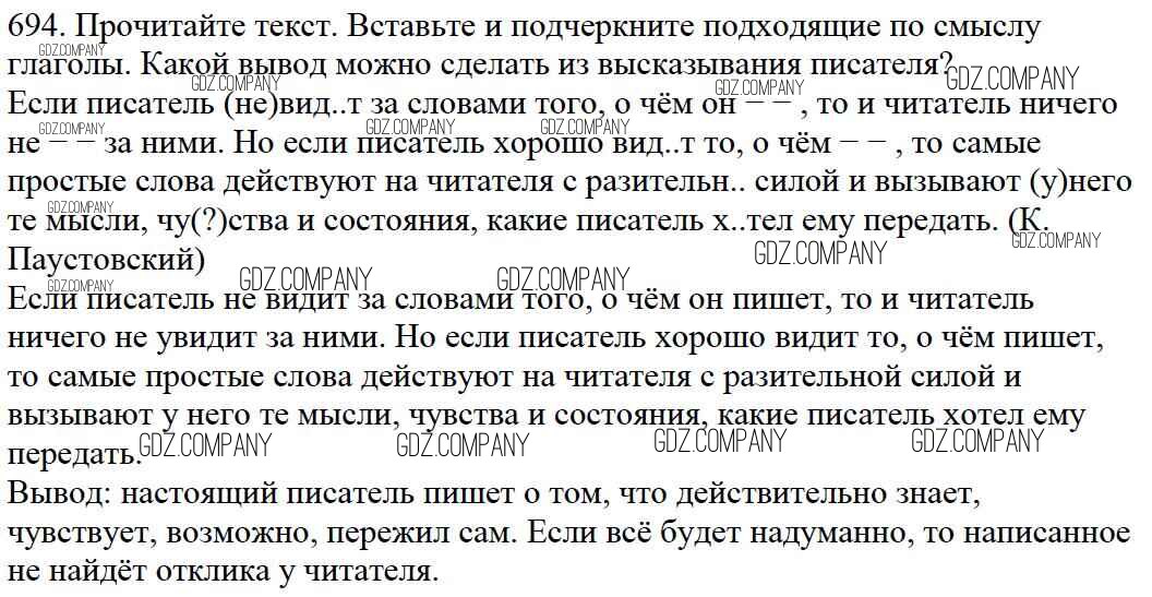 Здесь готовые ответы по Русскому языку за 5 (пятый) класс от Баранов, Ладыженская, Тростенцова, Кулибаба, Григорян Учебник (издательство: Просвещение от 2016 г.) № 694