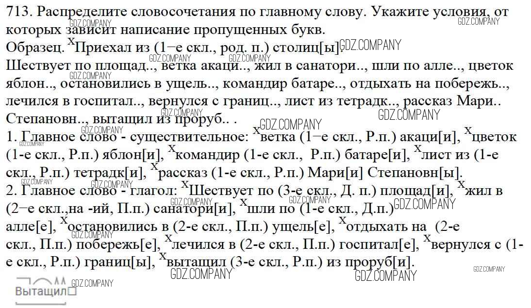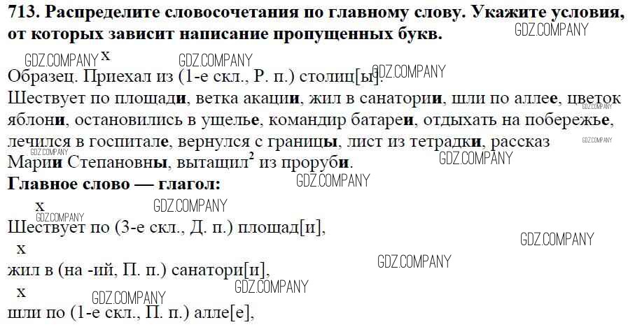 Здесь готовые ответы по Русскому языку за 5 (пятый) класс от Баранов, Ладыженская, Тростенцова, Кулибаба, Григорян Учебник (издательство: Просвещение от 2016 г.) № 713