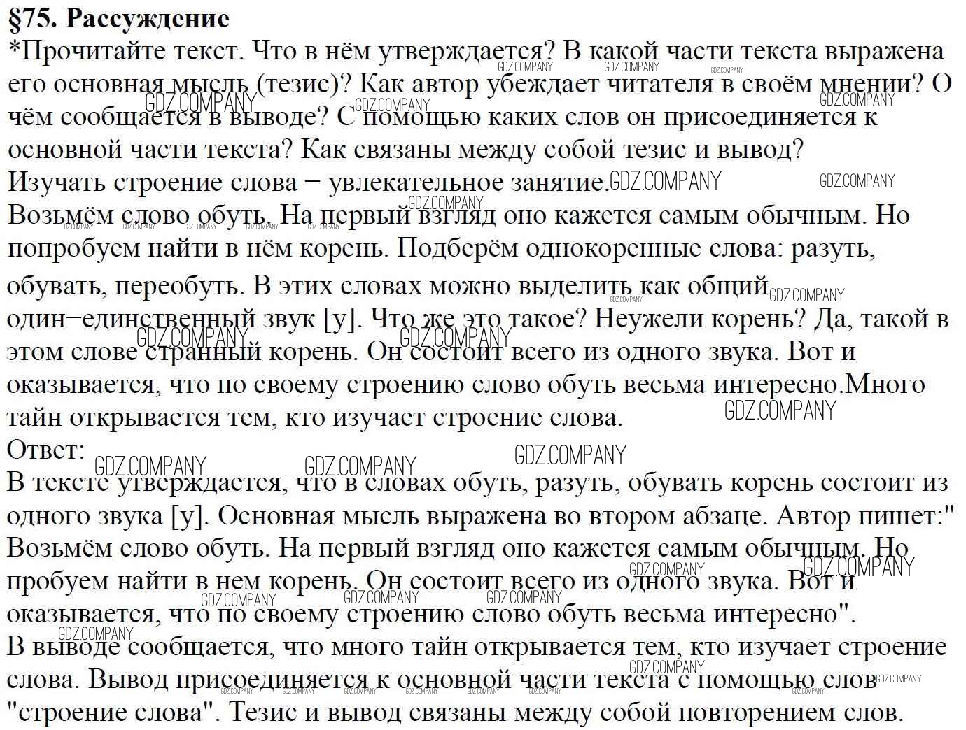 Здесь готовые ответы по Русскому языку за 5 (пятый) класс от Баранов, Ладыженская, Тростенцова, Кулибаба, Григорян Учебник (издательство: Просвещение от 2016 г.) № §75