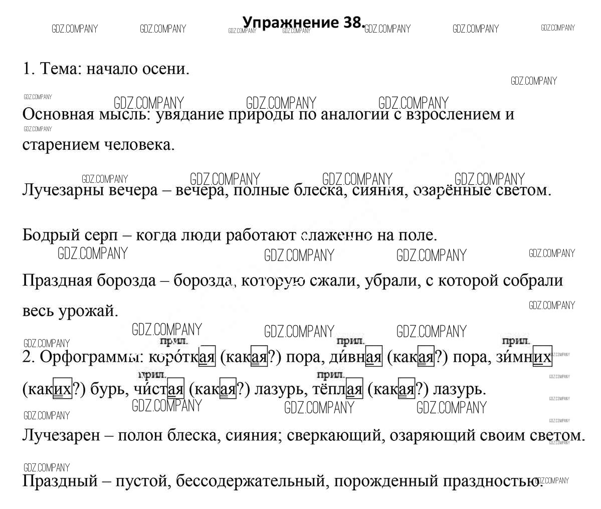 Здесь готовые ответы по Русскому языку за 5 (пятый) класс от Мурина, Игнатович, Жадейко Учебник (издательство: Национальный институт образования от 2014 г.) № 38