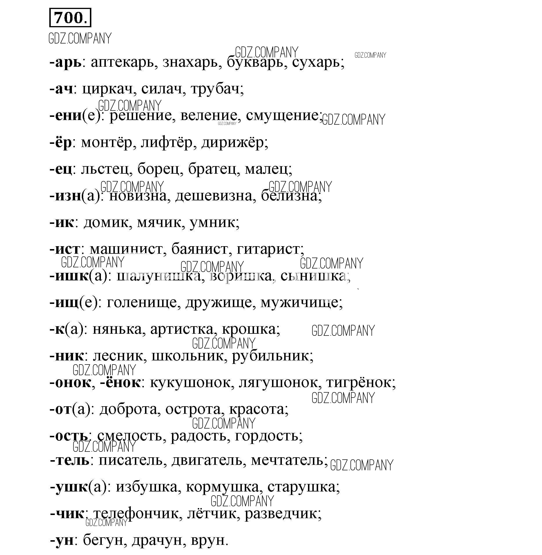 Здесь готовые ответы по Русскому языку за 5 (пятый) класс от Разумовская, Львова, Капинос, Львов, Богданова, Тронина, Сергеева Учебник (издательство: Дрофа от 2014 г.) № 700