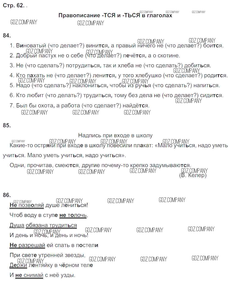 Здесь готовые ответы по Русскому языку за 5 (пятый) класс от Тростенцова, Дейкина, Невская Рабочая тетрадь УМК (издательство: Экзамен от 2015 г.) № 62