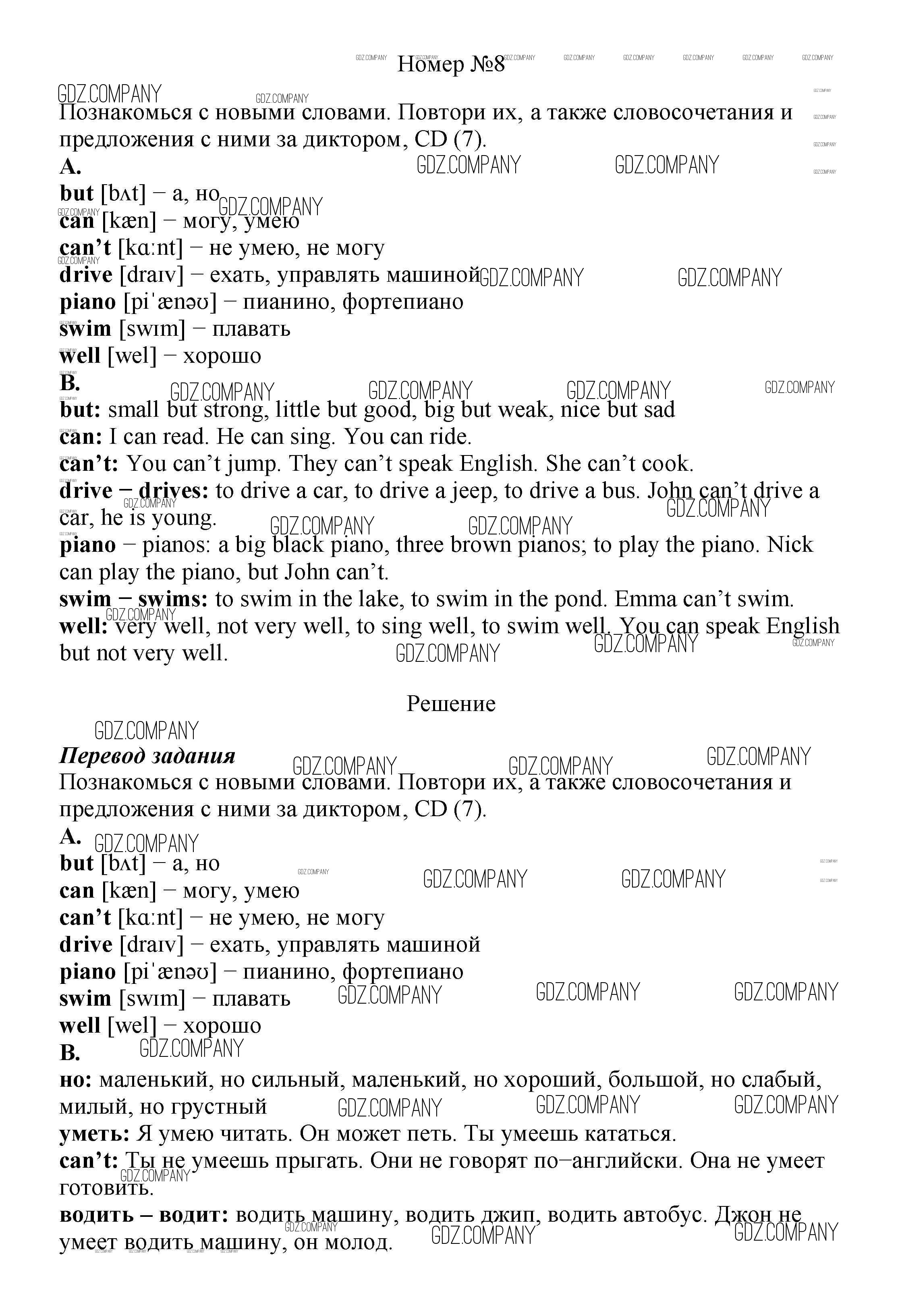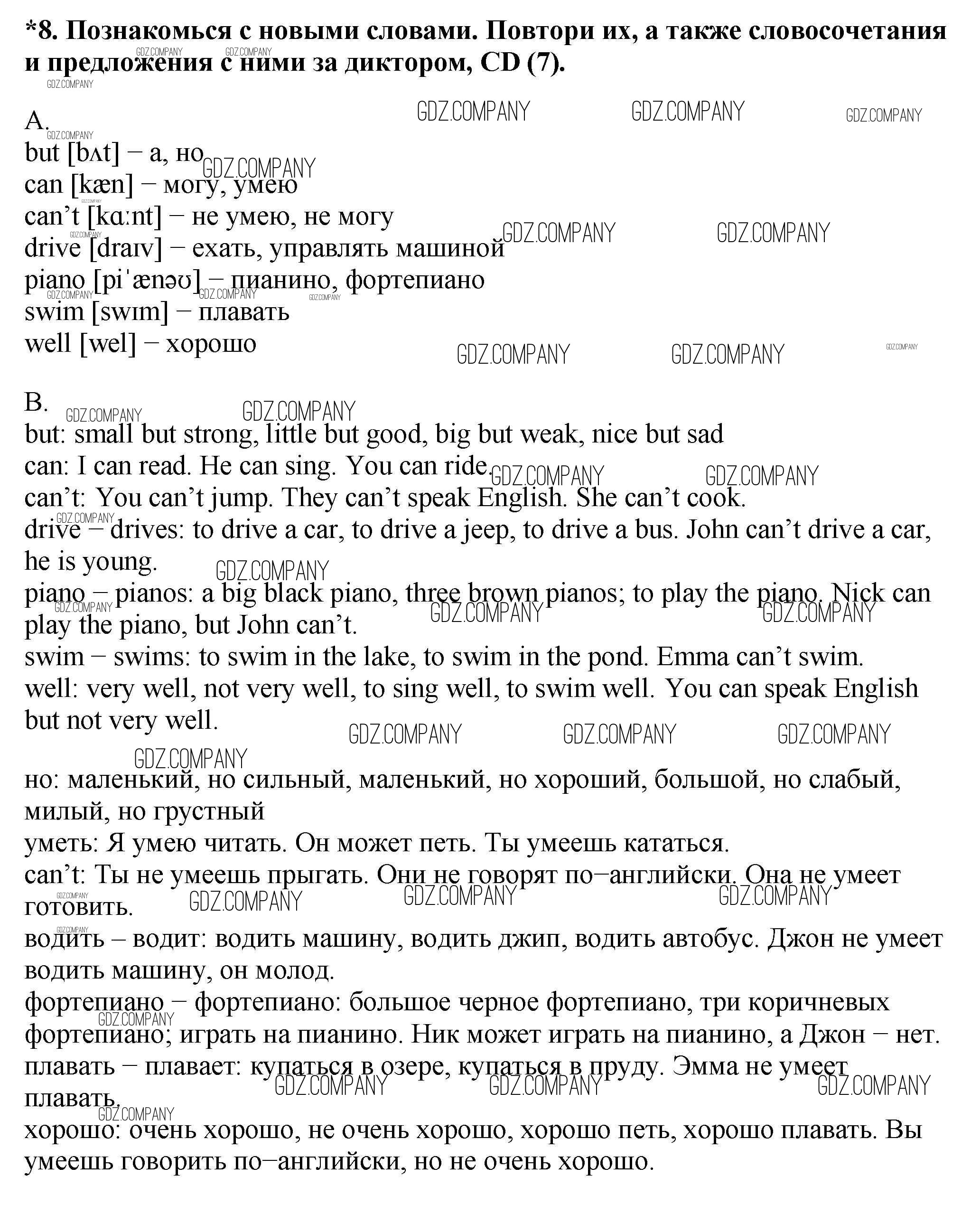 Здесь готовые ответы по Английскому языку за 6 (шестой) класс от Афанасьева, Михеева Учебник Новый курс (издательство: Дрофа от 2017 г.) № 8
