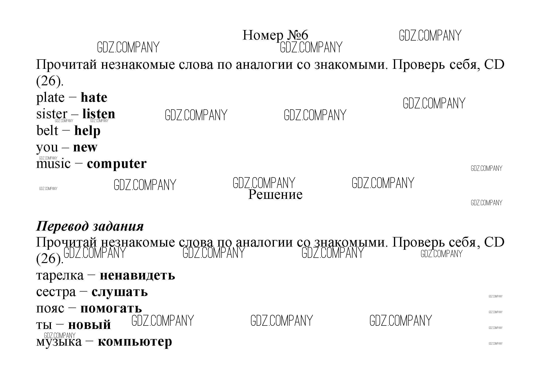 Здесь готовые ответы по Английскому языку за 6 (шестой) класс от Афанасьева, Михеева Учебник Новый курс (издательство: Дрофа от 2017 г.) № 6