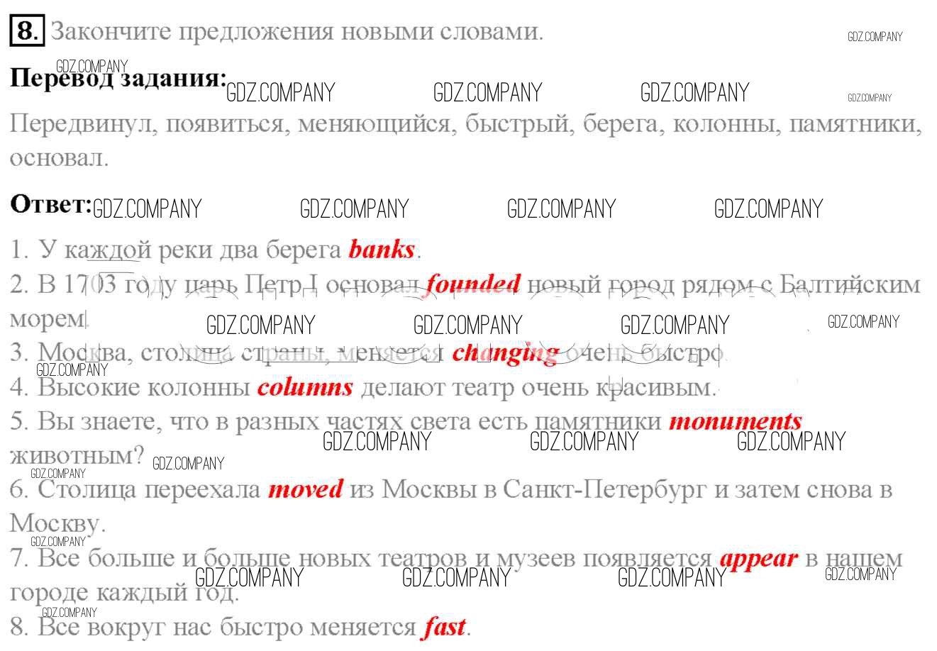 Здесь готовые ответы по Английскому языку за 6 (шестой) класс от Афанасьева, Михеева, Баранова Учебник Rainbow (издательство: Дрофа от 2017 г.) № 8