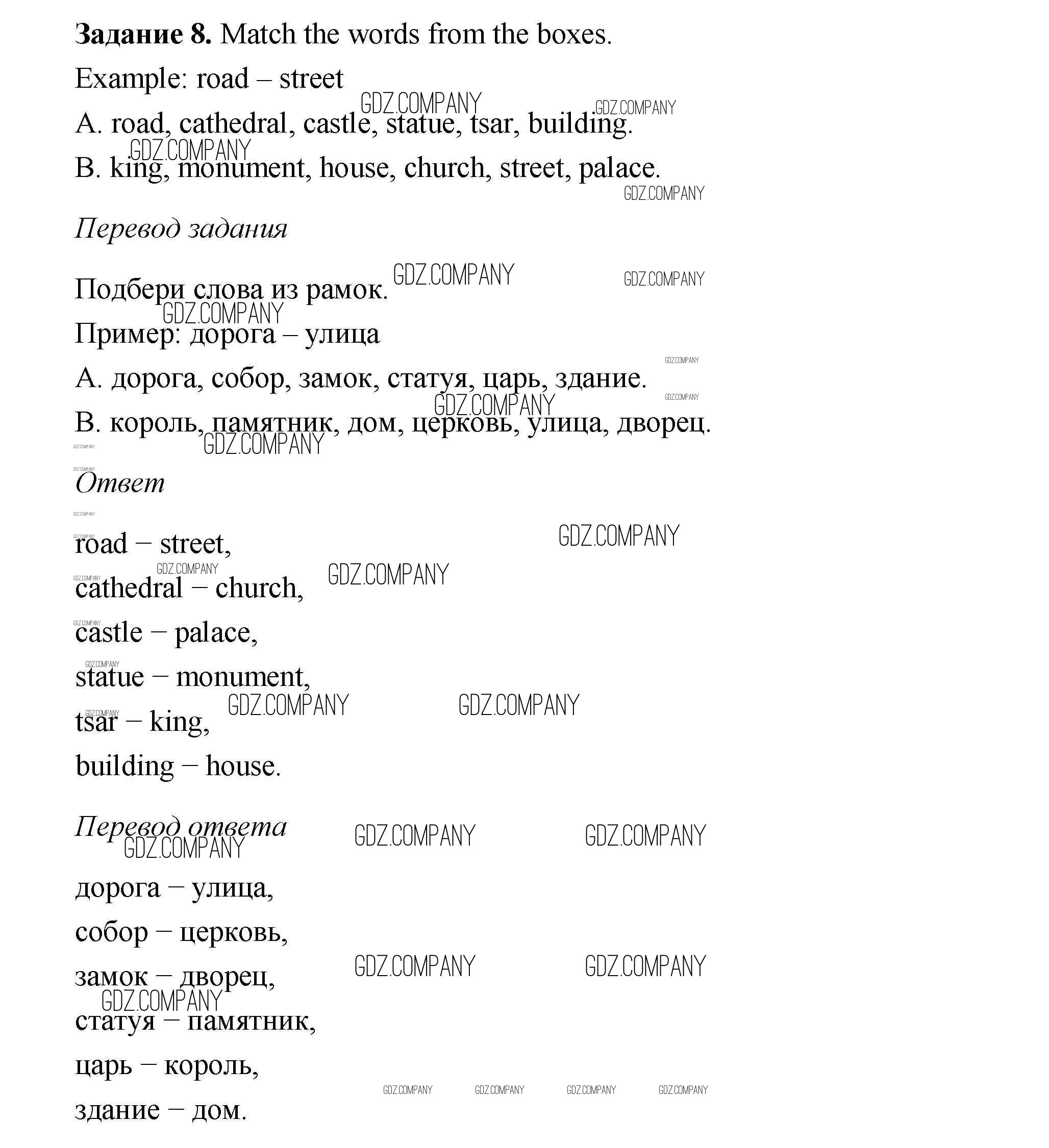 Здесь готовые ответы по Английскому языку за 6 (шестой) класс от Афанасьева, Михеева, Баранова Учебник Rainbow (издательство: Дрофа от 2017 г.) № 8