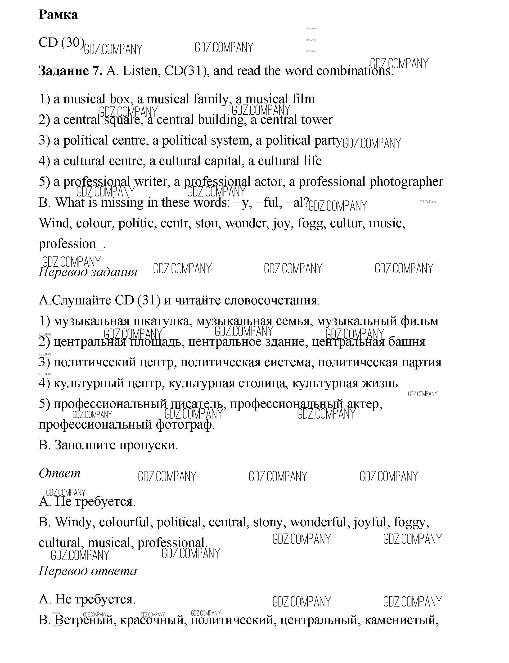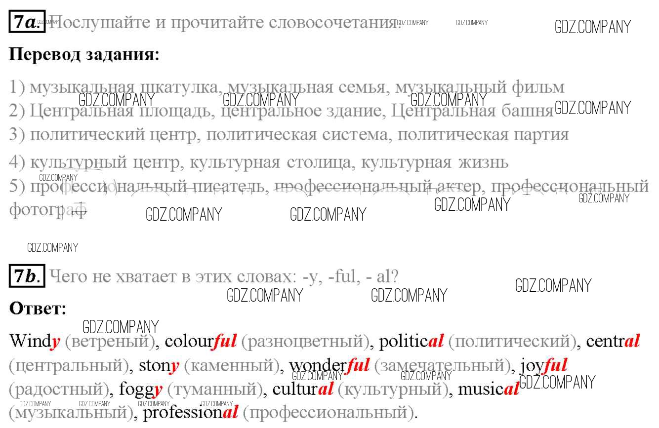 Здесь готовые ответы по Английскому языку за 6 (шестой) класс от Афанасьева, Михеева, Баранова Учебник Rainbow (издательство: Дрофа от 2017 г.) № 7