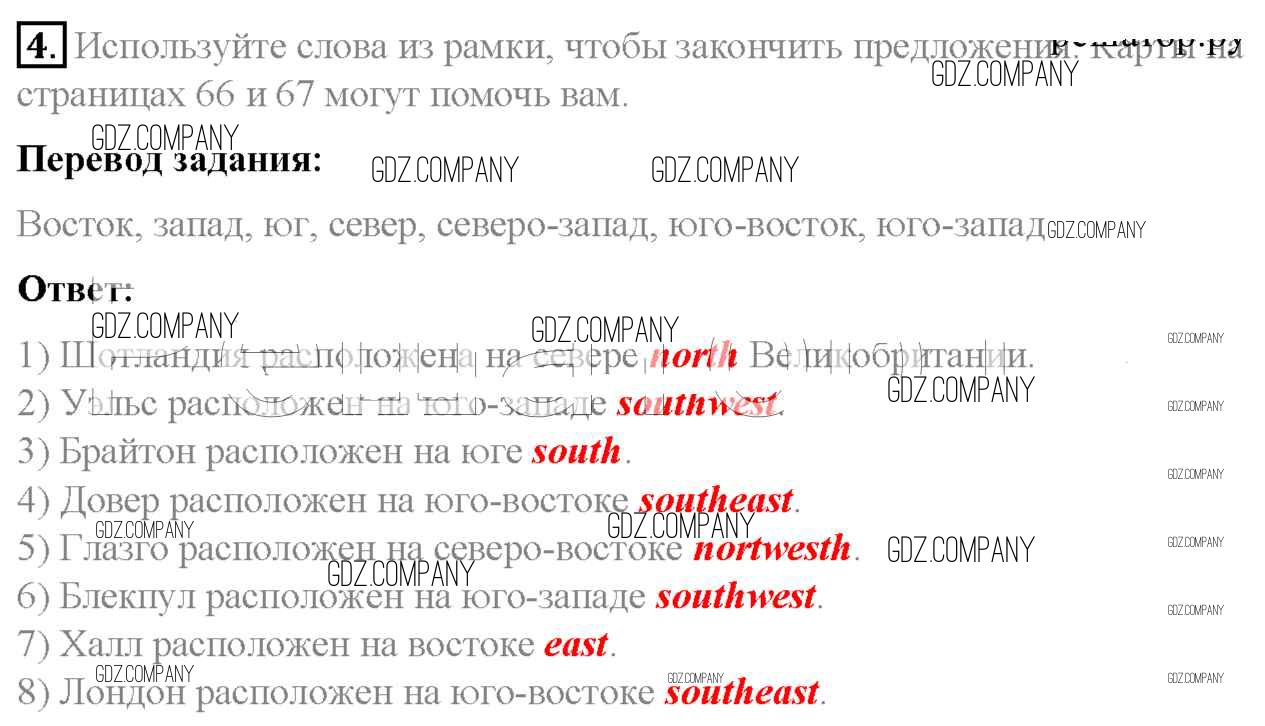 Здесь готовые ответы по Английскому языку за 6 (шестой) класс от Афанасьева, Михеева, Баранова Учебник Rainbow (издательство: Дрофа от 2017 г.) № 4