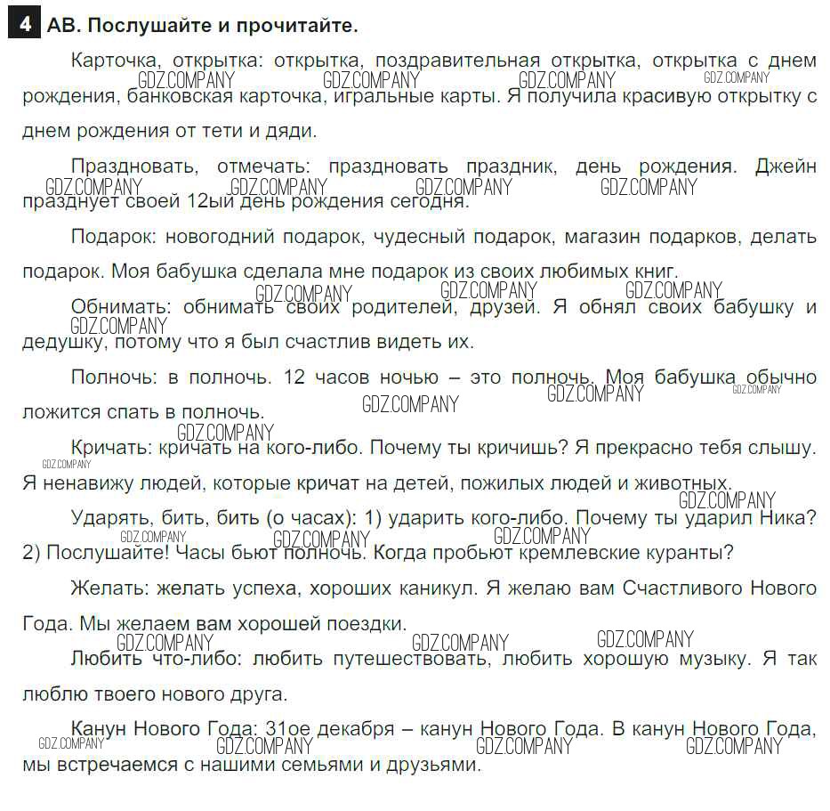 Здесь готовые ответы по Английскому языку за 6 (шестой) класс от Афанасьева, Михеева, Баранова Учебник Rainbow (издательство: Дрофа от 2017 г.) № 4