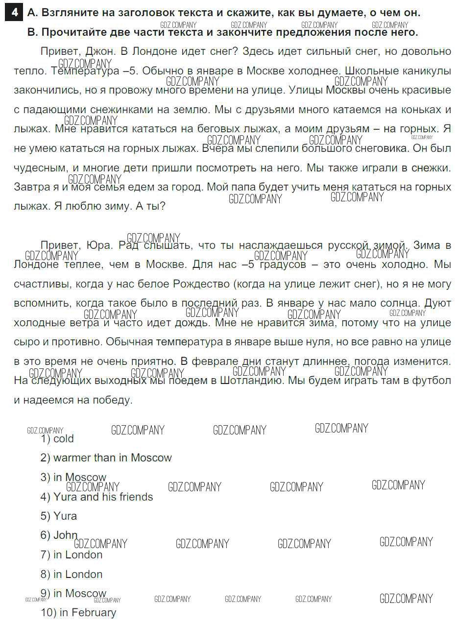 Здесь готовые ответы по Английскому языку за 6 (шестой) класс от Афанасьева, Михеева, Баранова Учебник Rainbow (издательство: Дрофа от 2017 г.) № 4