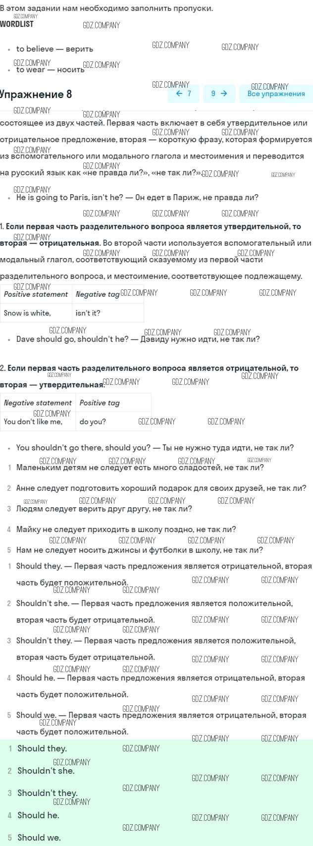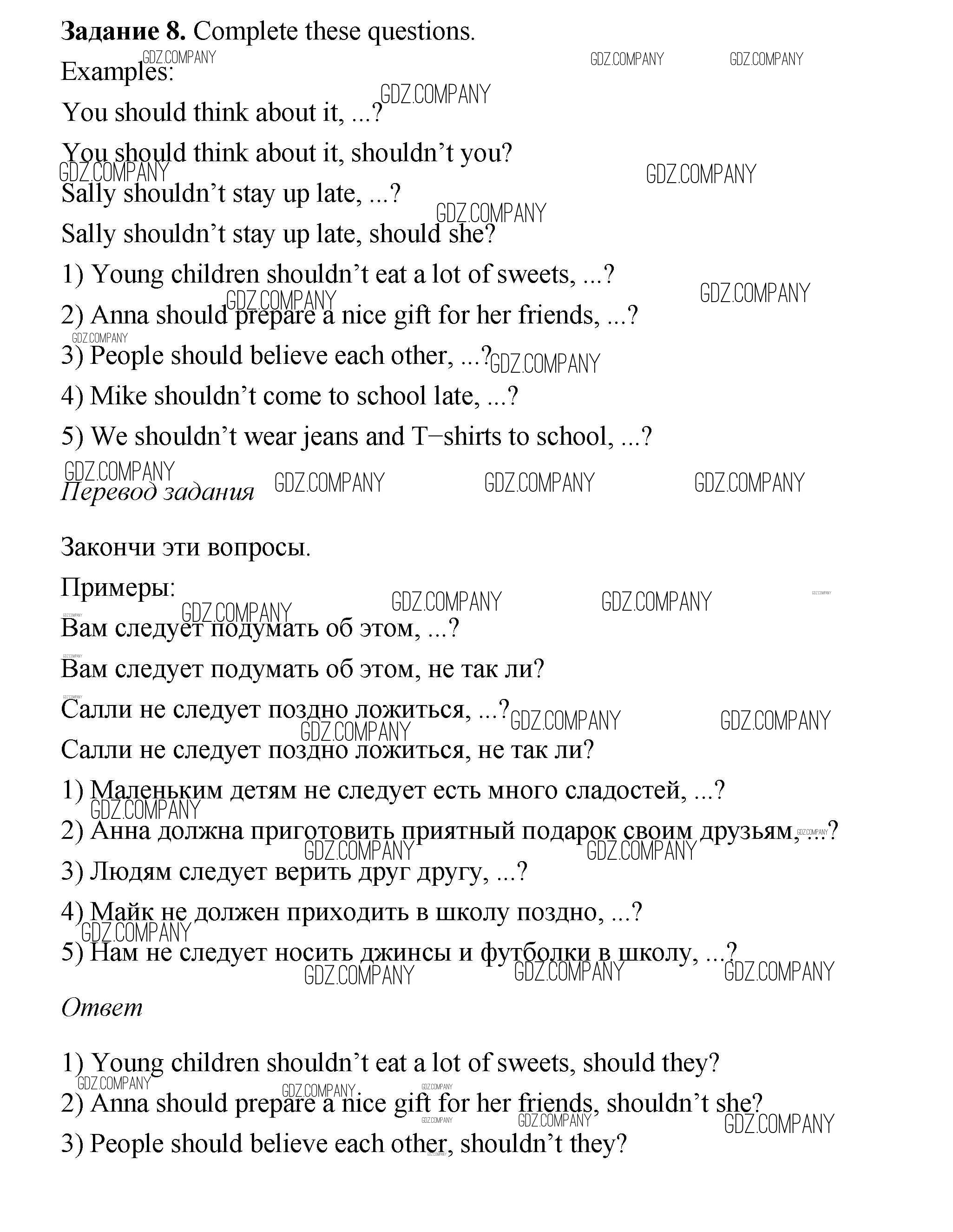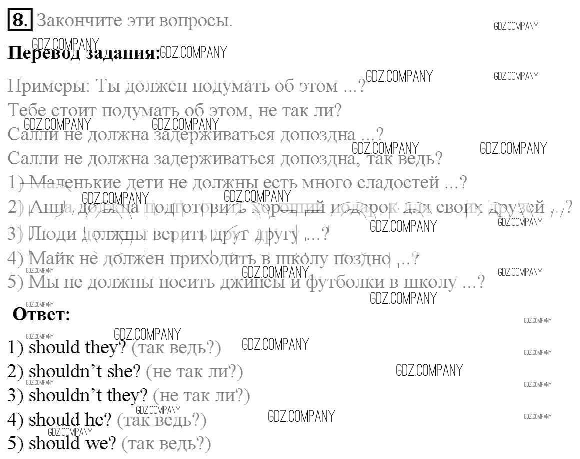 Здесь готовые ответы по Английскому языку за 6 (шестой) класс от Афанасьева, Михеева, Баранова Учебник Rainbow (издательство: Дрофа от 2017 г.) № 8