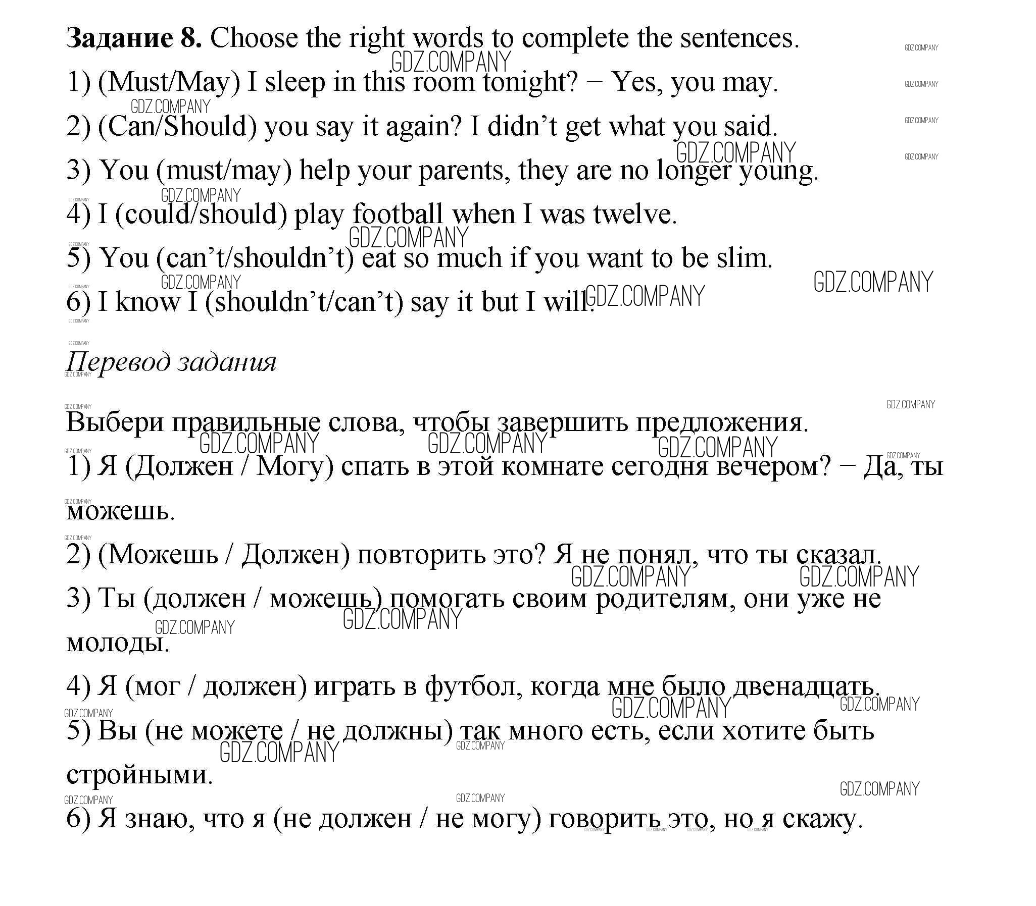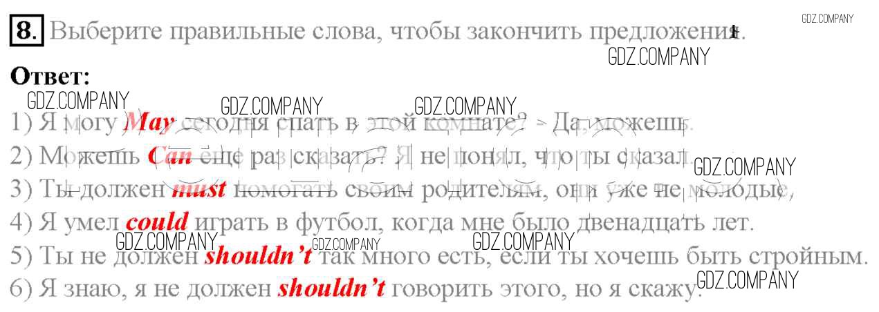 Здесь готовые ответы по Английскому языку за 6 (шестой) класс от Афанасьева, Михеева, Баранова Учебник Rainbow (издательство: Дрофа от 2017 г.) № 8
