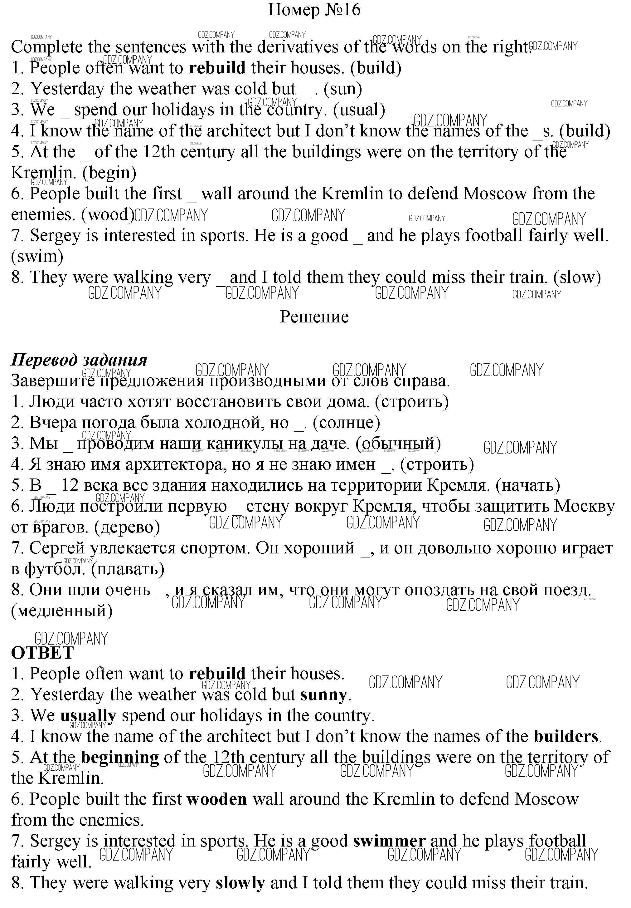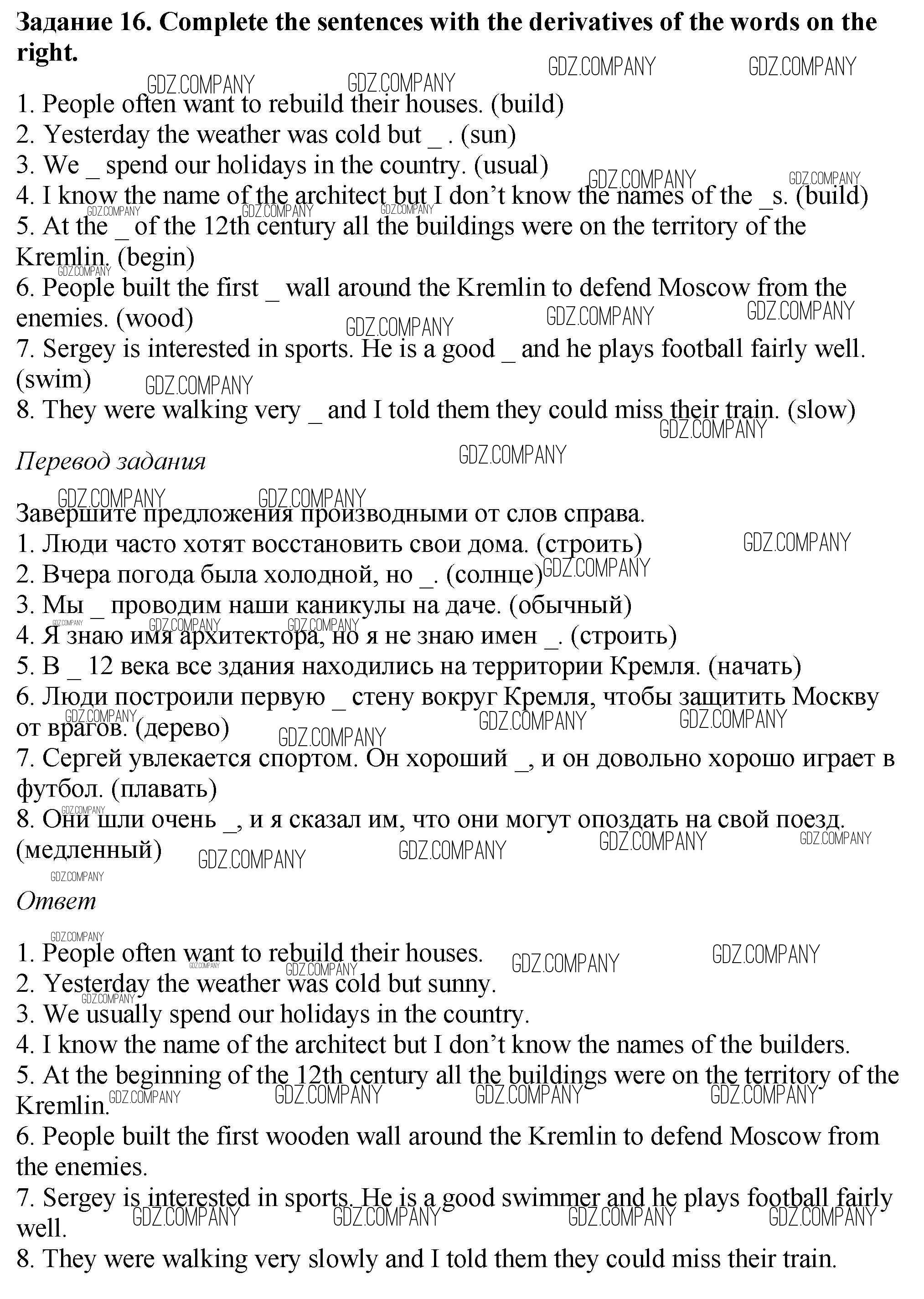 Здесь готовые ответы по Английскому языку за 6 (шестой) класс от Афанасьева, Михеева, Баранова Рабочая тетрадь Rainbow (издательство: Дрофа от 2017 г.) № 16