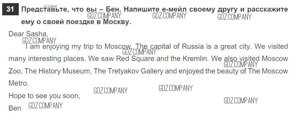 Здесь готовые ответы по Английскому языку за 6 (шестой) класс от Афанасьева, Михеева, Баранова Рабочая тетрадь Rainbow (издательство: Дрофа от 2017 г.) № 31