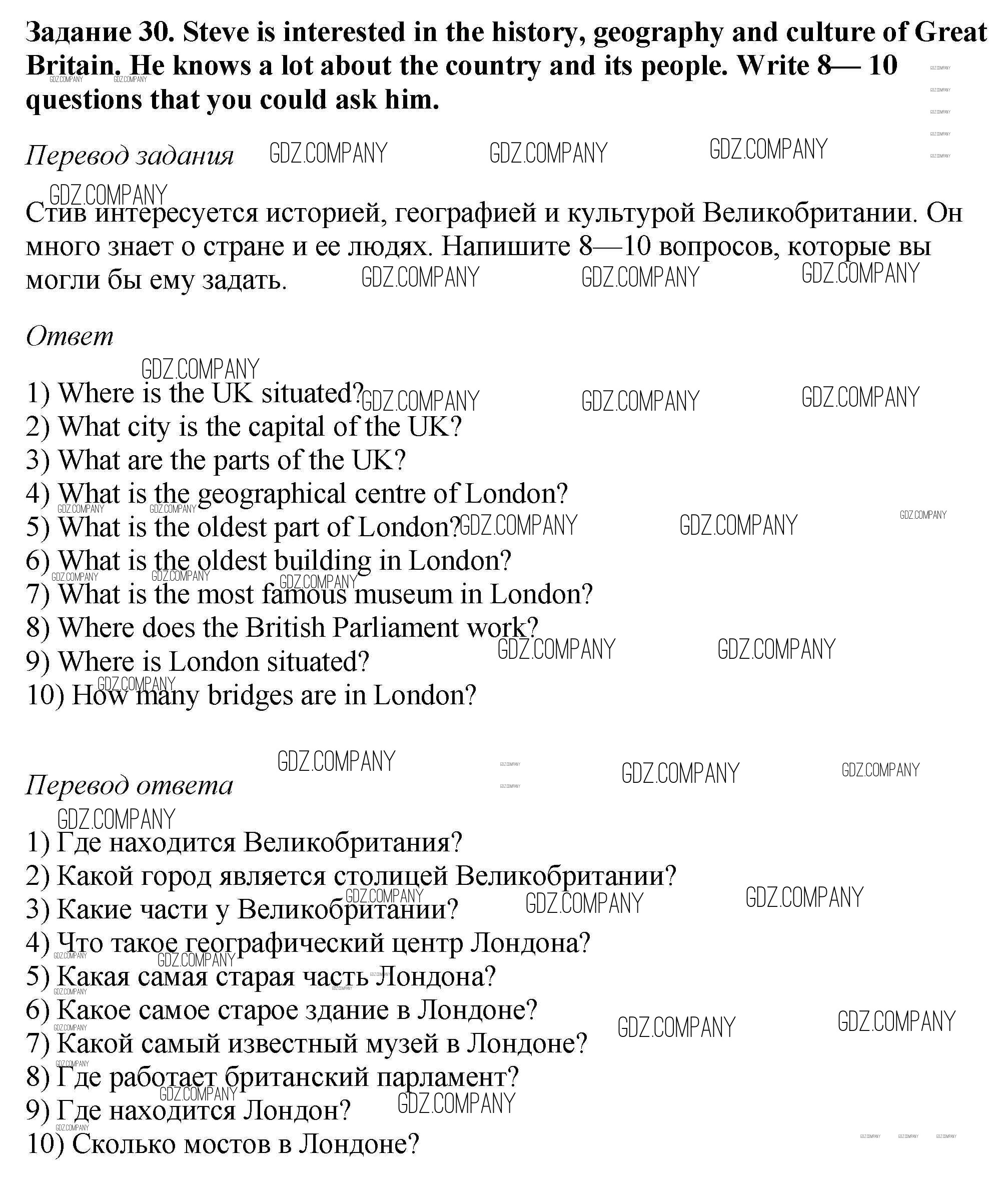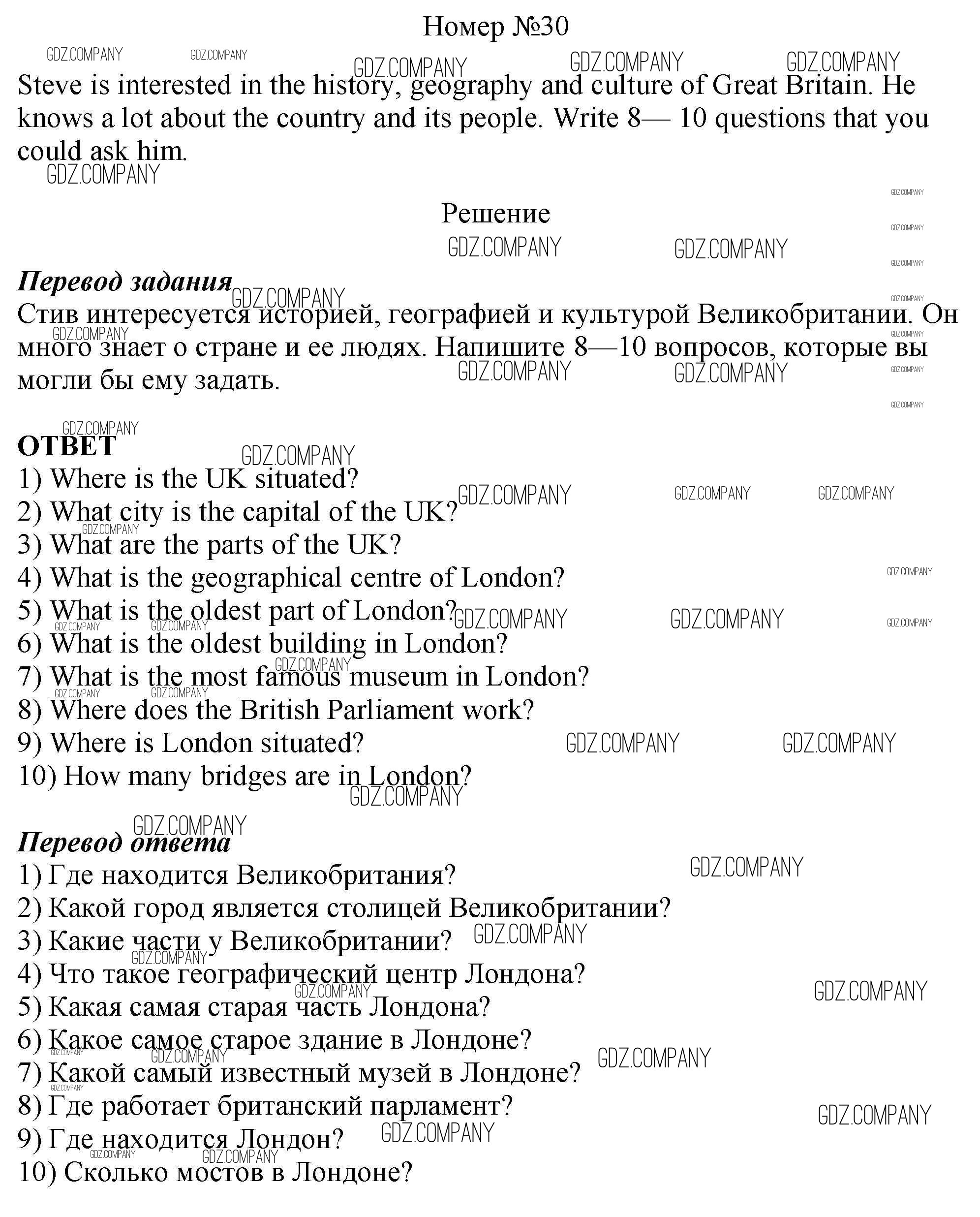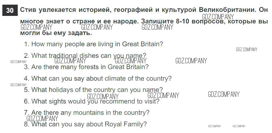 Здесь готовые ответы по Английскому языку за 6 (шестой) класс от Афанасьева, Михеева, Баранова Рабочая тетрадь Rainbow (издательство: Дрофа от 2017 г.) № 30