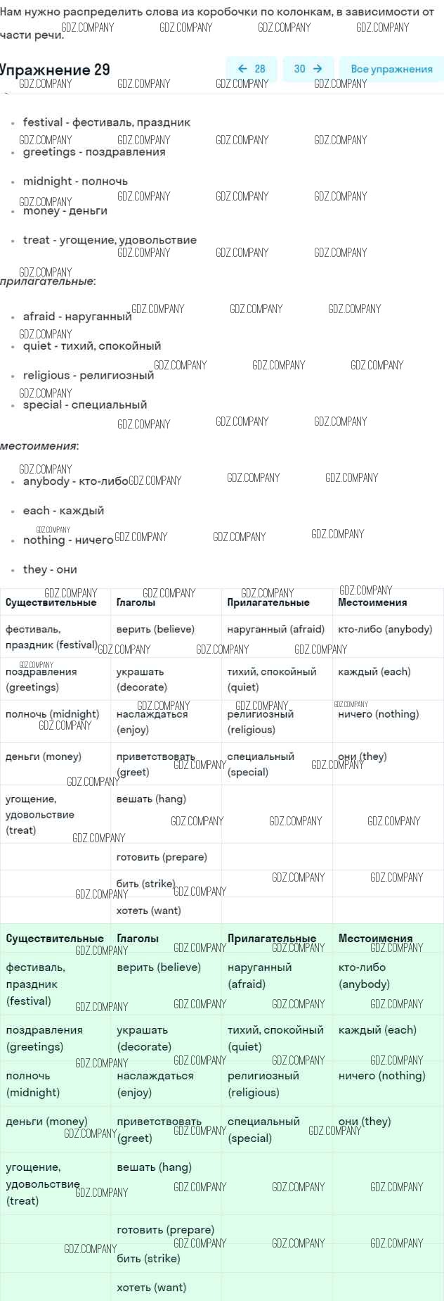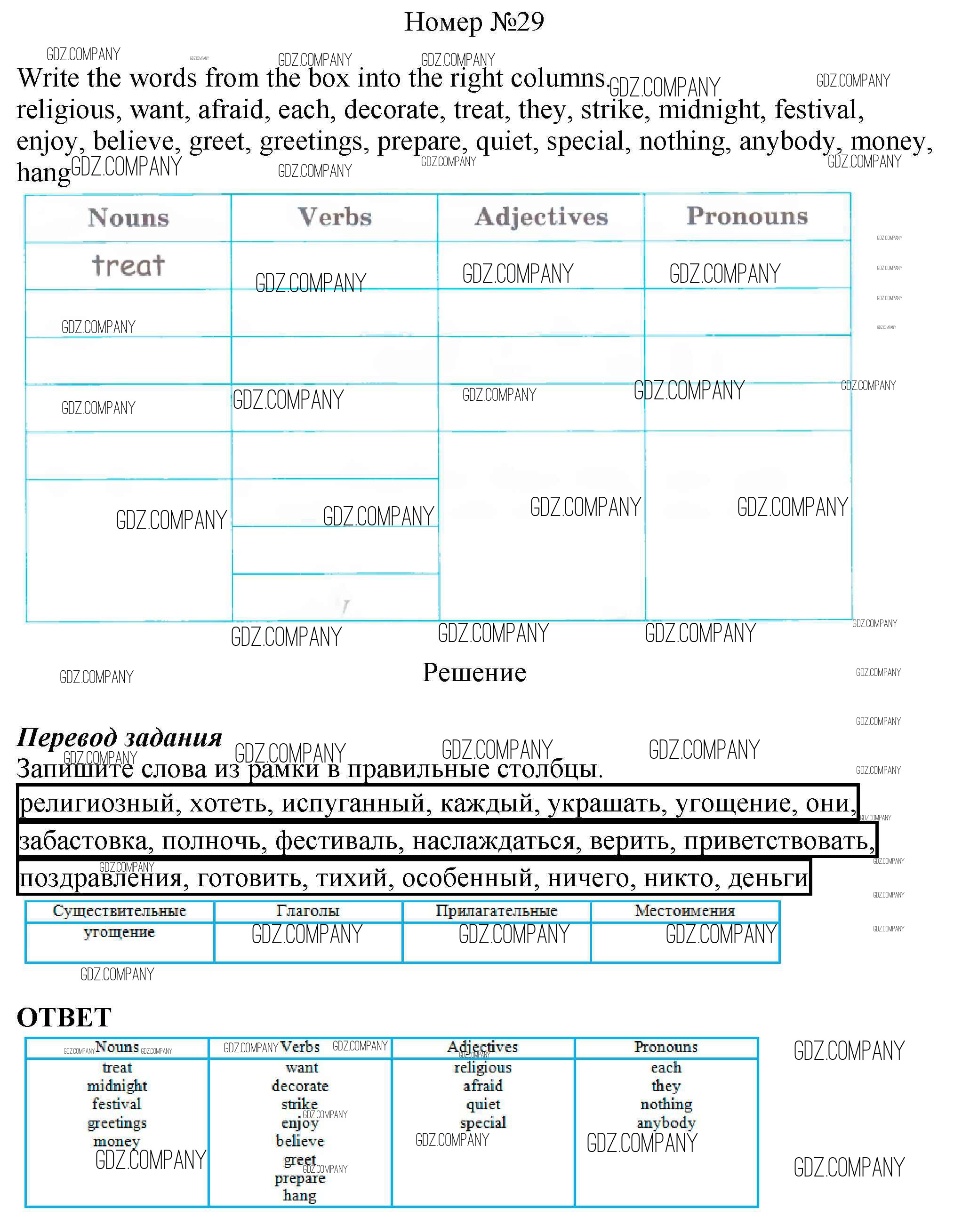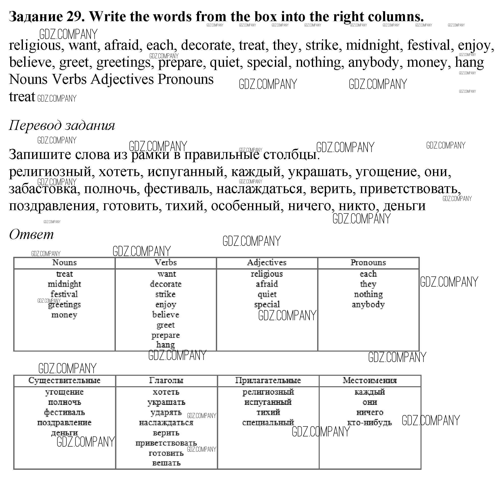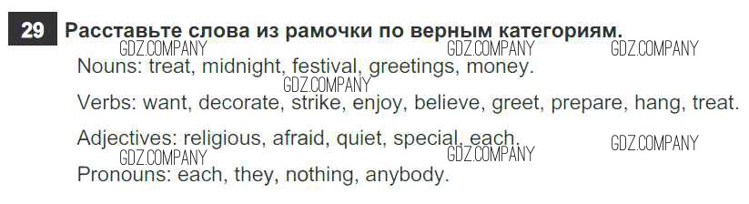Здесь готовые ответы по Английскому языку за 6 (шестой) класс от Афанасьева, Михеева, Баранова Рабочая тетрадь Rainbow (издательство: Дрофа от 2017 г.) № 29
