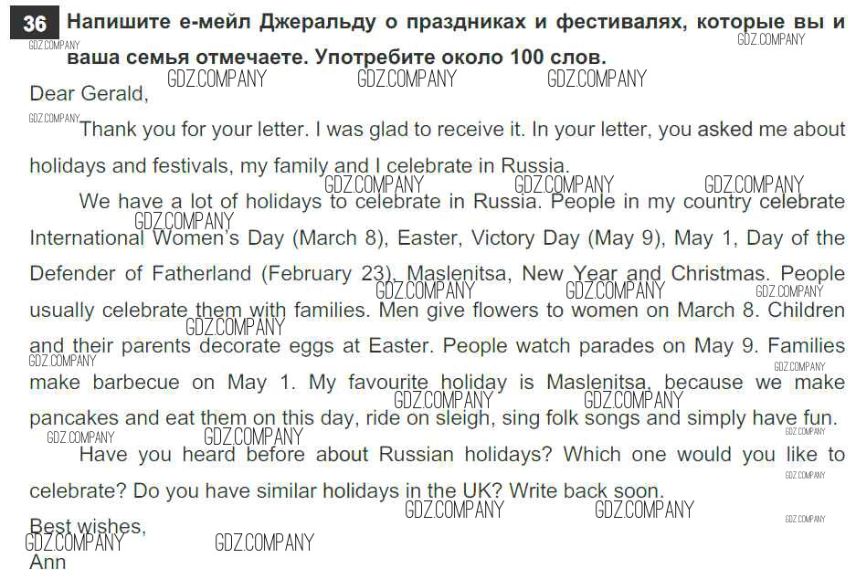 Здесь готовые ответы по Английскому языку за 6 (шестой) класс от Афанасьева, Михеева, Баранова Рабочая тетрадь Rainbow (издательство: Дрофа от 2017 г.) № 36