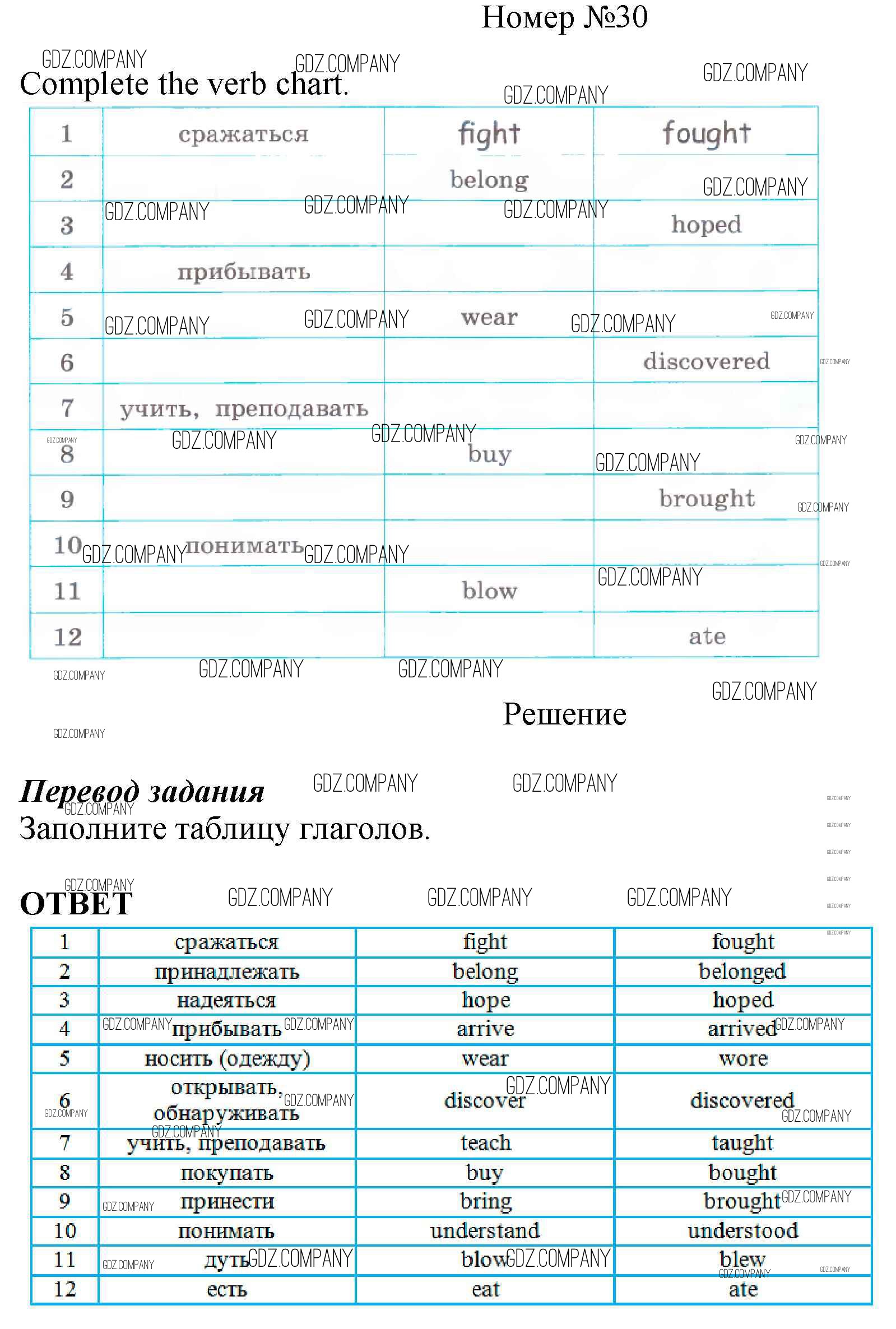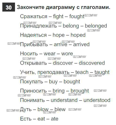Здесь готовые ответы по Английскому языку за 6 (шестой) класс от Афанасьева, Михеева, Баранова Рабочая тетрадь Rainbow (издательство: Дрофа от 2017 г.) № 30