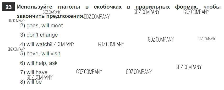 Здесь готовые ответы по Английскому языку за 6 (шестой) класс от Афанасьева, Михеева, Баранова Рабочая тетрадь Rainbow (издательство: Дрофа от 2017 г.) № 23