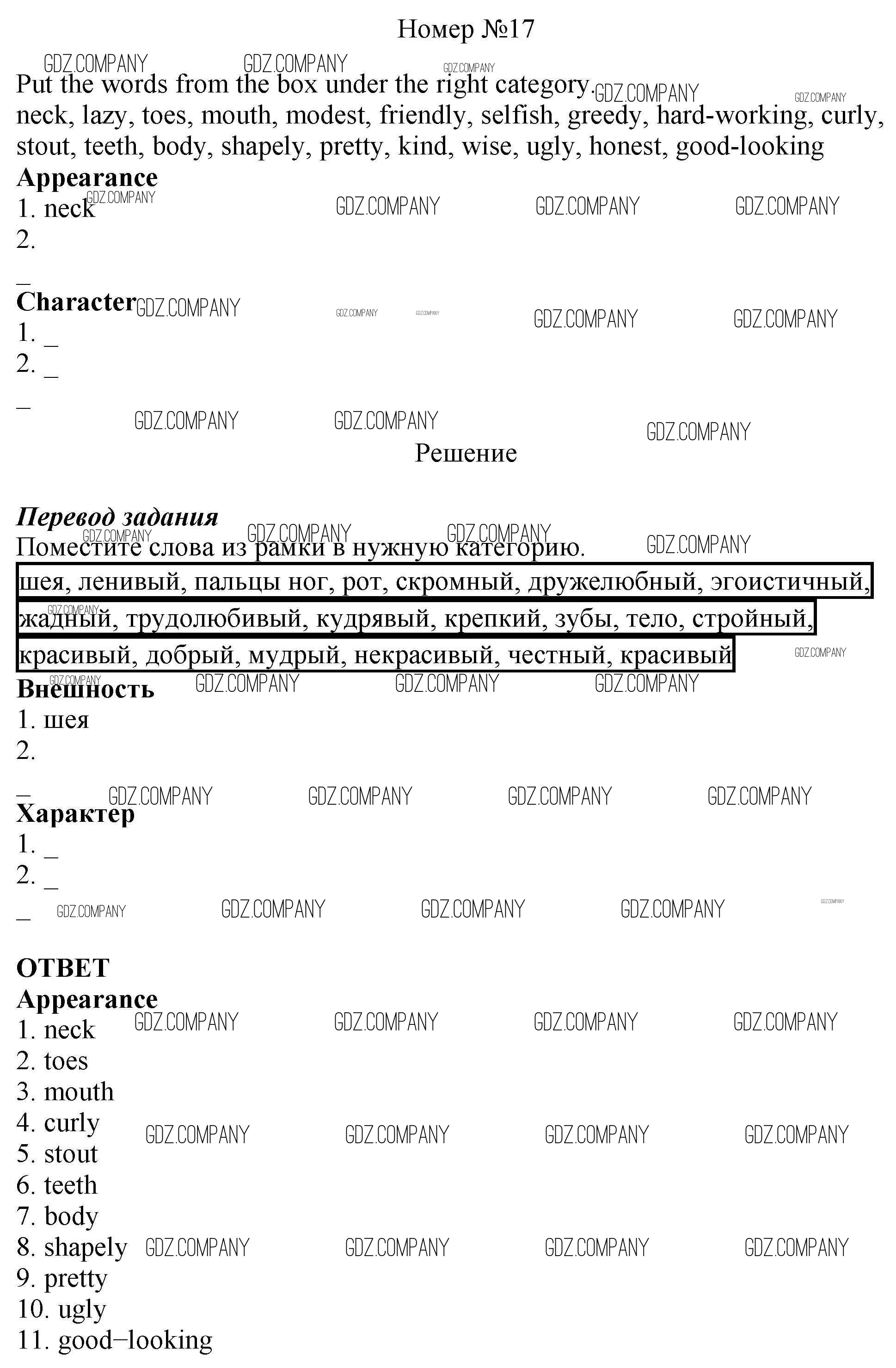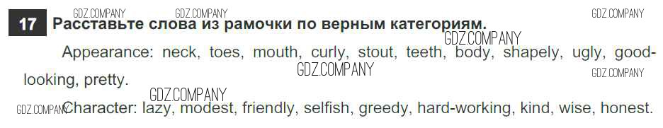 Здесь готовые ответы по Английскому языку за 6 (шестой) класс от Афанасьева, Михеева, Баранова Рабочая тетрадь Rainbow (издательство: Дрофа от 2017 г.) № 17