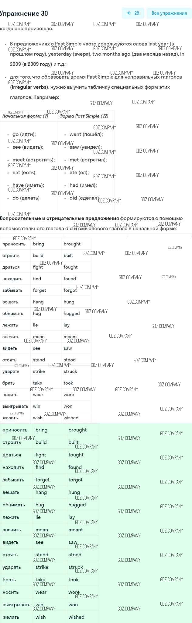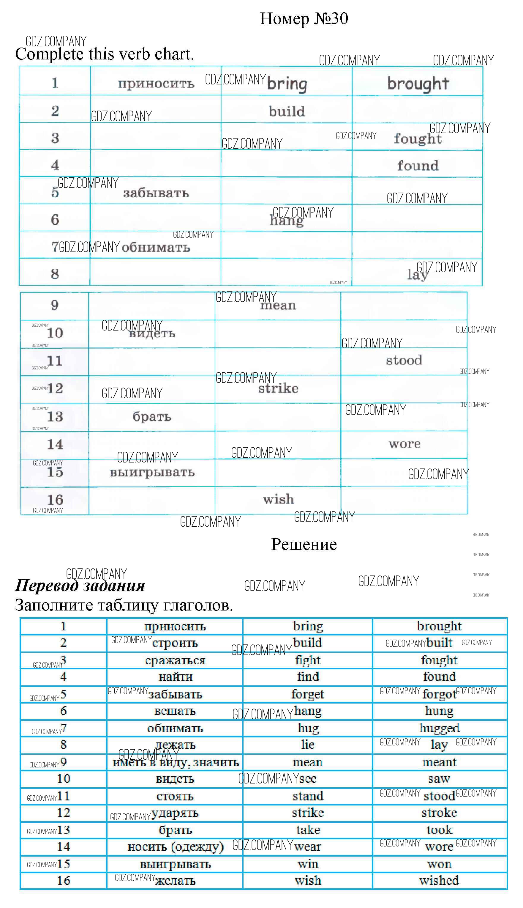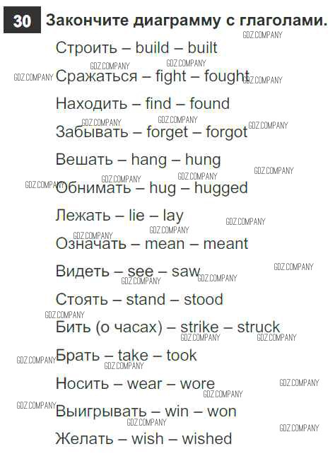 Здесь готовые ответы по Английскому языку за 6 (шестой) класс от Афанасьева, Михеева, Баранова Рабочая тетрадь Rainbow (издательство: Дрофа от 2017 г.) № 30