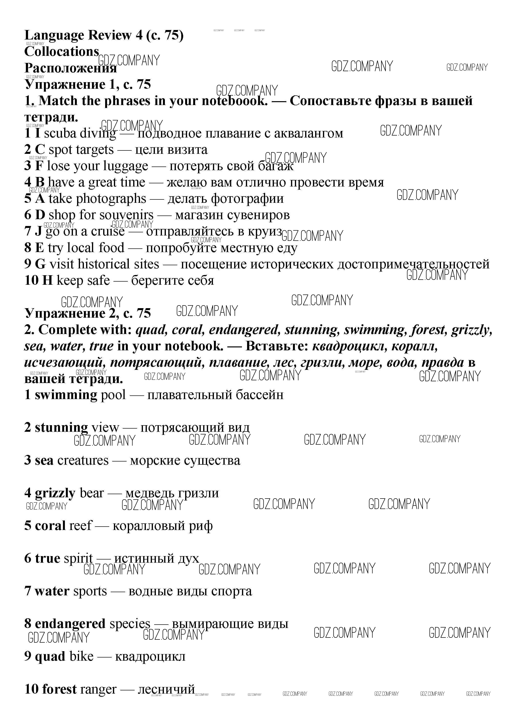 Здесь готовые ответы по Английскому языку за 6 (шестой) класс от Баранова, Дули, Эванс, Копылова, Мильруд Учебник Starlight Углубленный уровень (издательство: Просвещение от 2017 г.) № стр.75 Углубленный уровень
