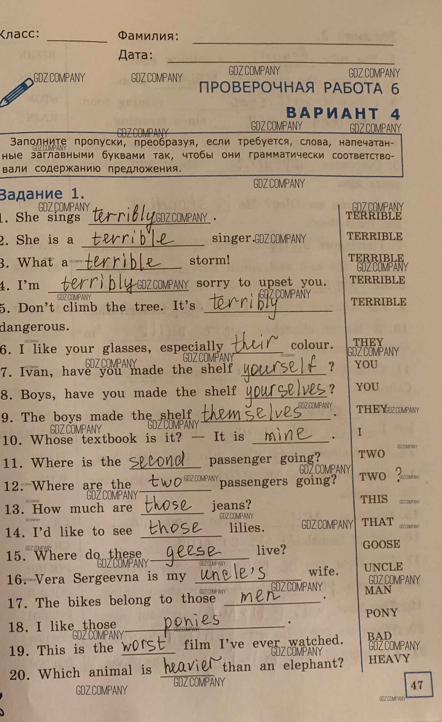 Здесь готовые ответы по Английскому языку за 6 (шестой) класс от Барашкова Проверочные работы УМК (издательство: Экзамен от 2017 г.) № вариант 4