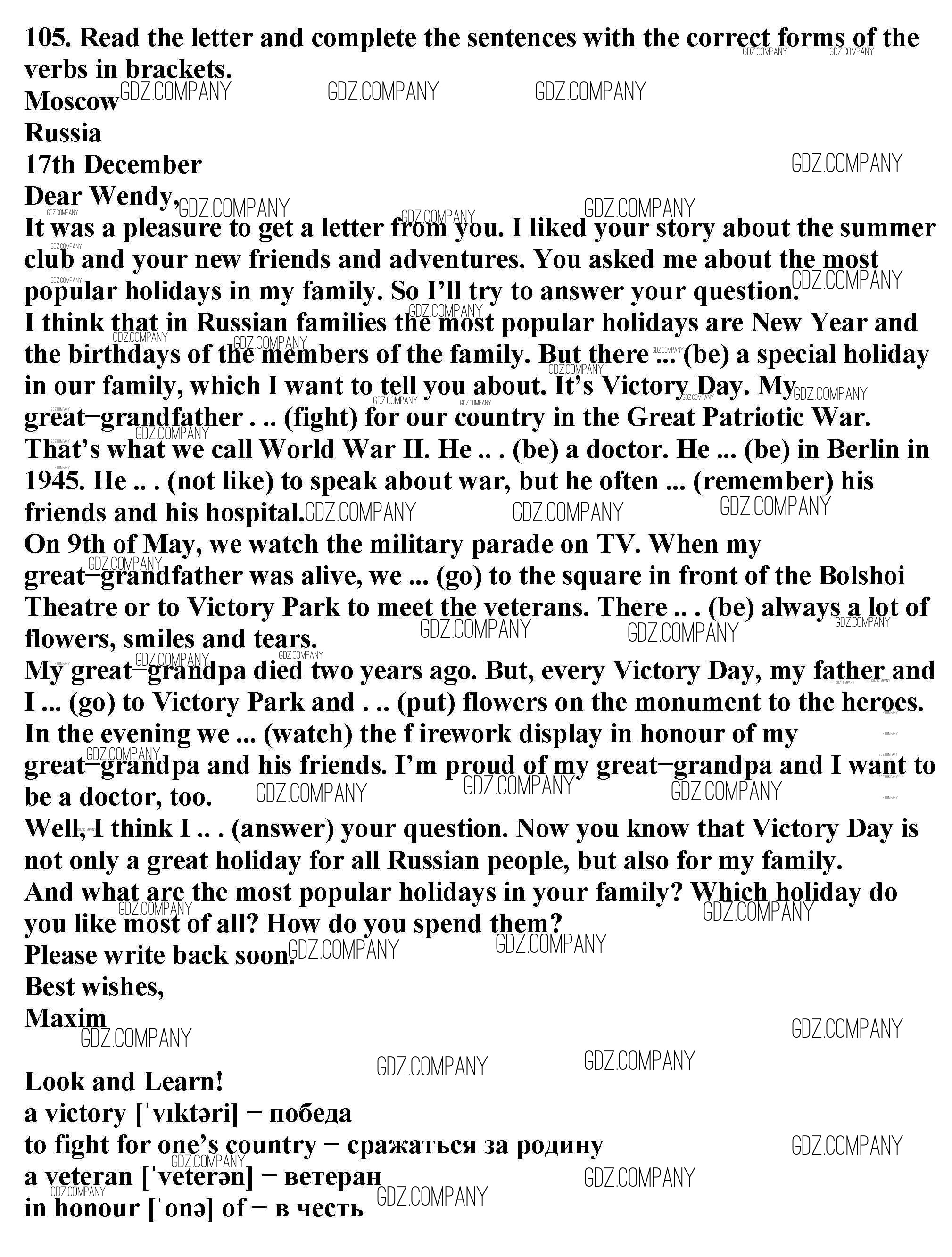 учебник 2019 / unit 1 / exercise / 105