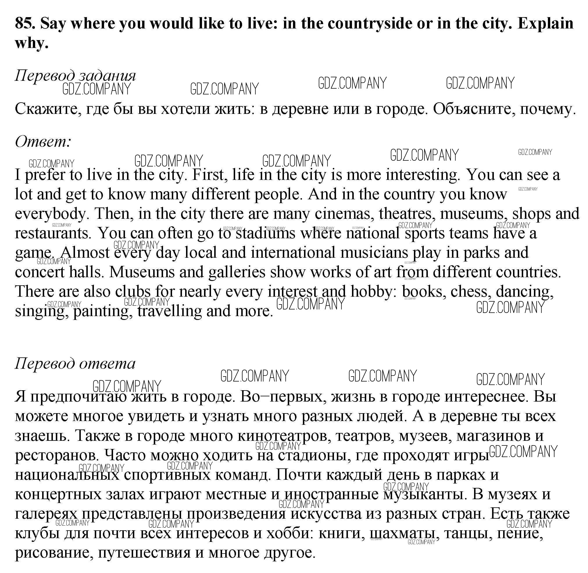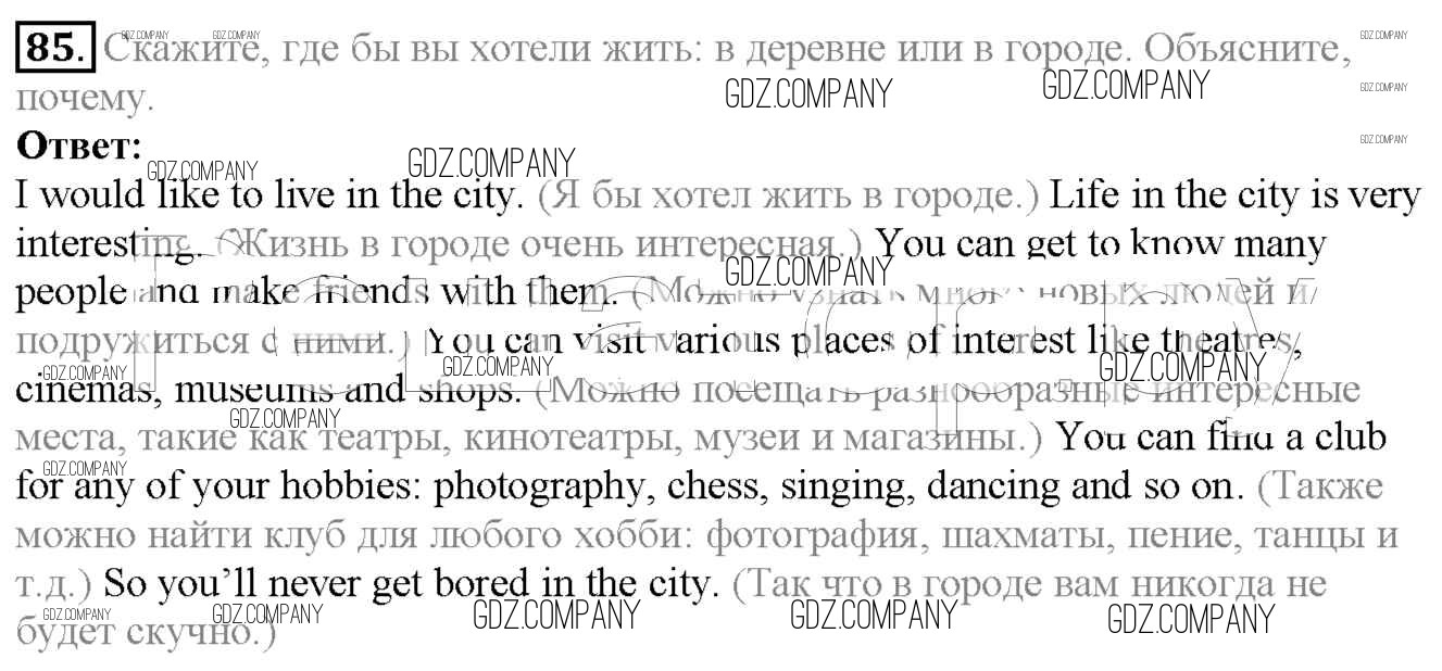 Здесь готовые ответы по Английскому языку за 6 (шестой) класс от Биболетова, Денисенко, Трубанева Учебник Enjoy English (издательство: Титул от 2015 г.) № 85