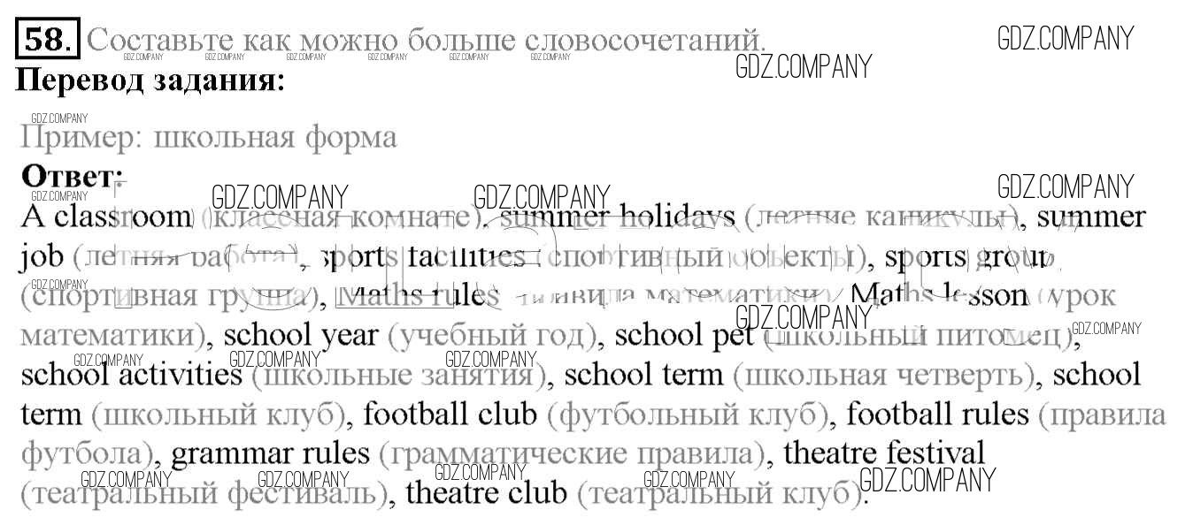 Здесь готовые ответы по Английскому языку за 6 (шестой) класс от Биболетова, Денисенко, Трубанева Учебник Enjoy English (издательство: Титул от 2015 г.) № 58