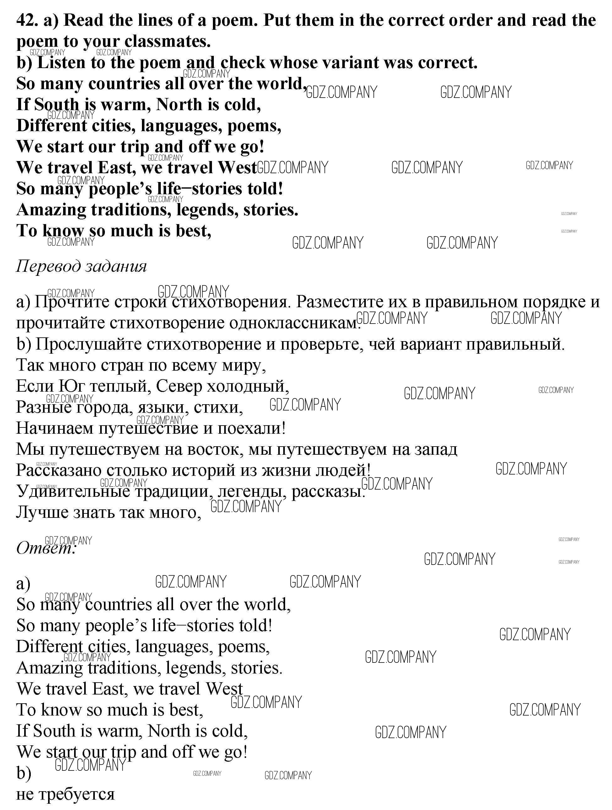 Здесь готовые ответы по Английскому языку за 6 (шестой) класс от Биболетова, Денисенко, Трубанева Учебник Enjoy English (издательство: Титул от 2015 г.) № 42