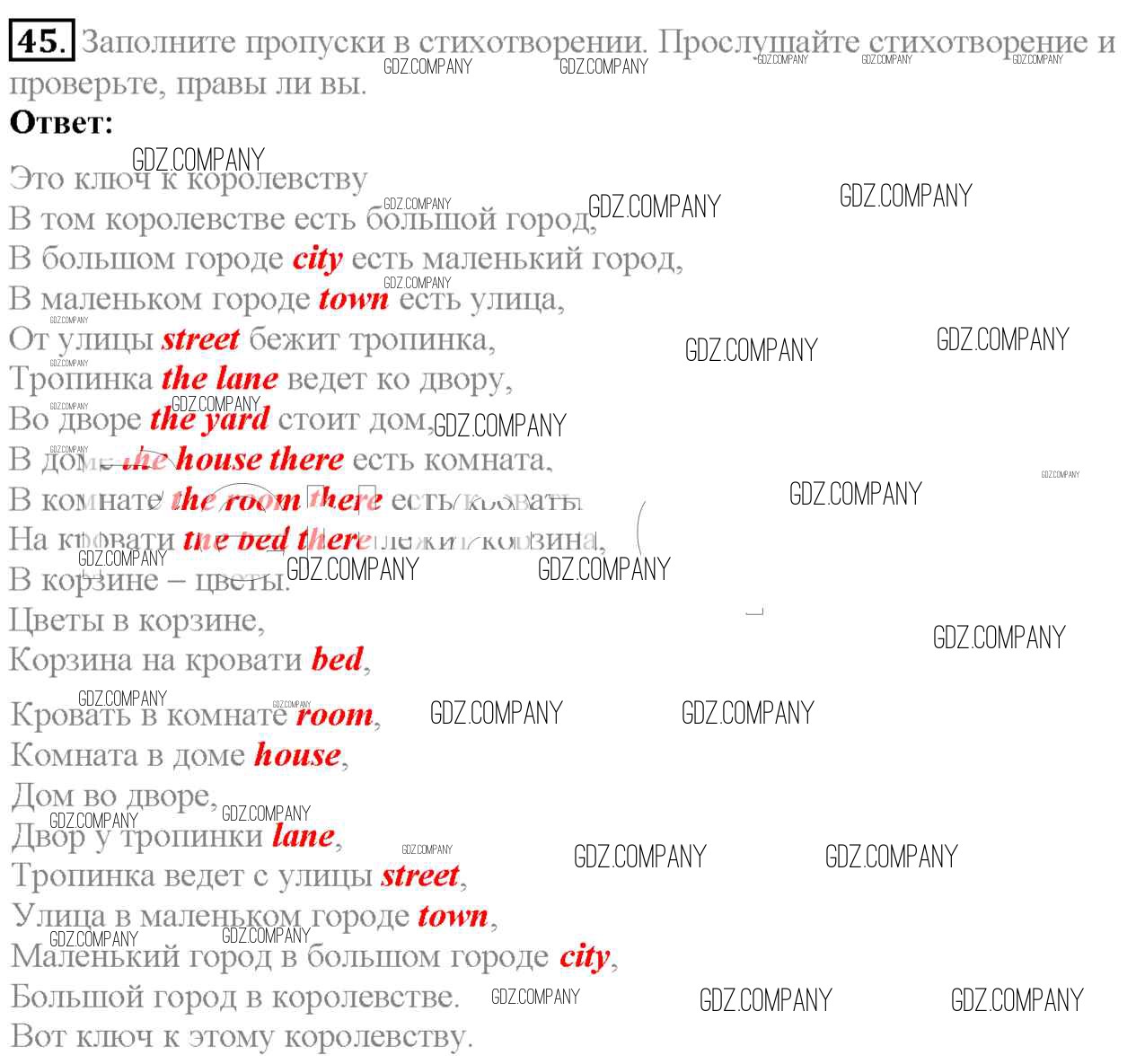 Здесь готовые ответы по Английскому языку за 6 (шестой) класс от Биболетова, Денисенко, Трубанева Учебник Enjoy English (издательство: Титул от 2015 г.) № 45