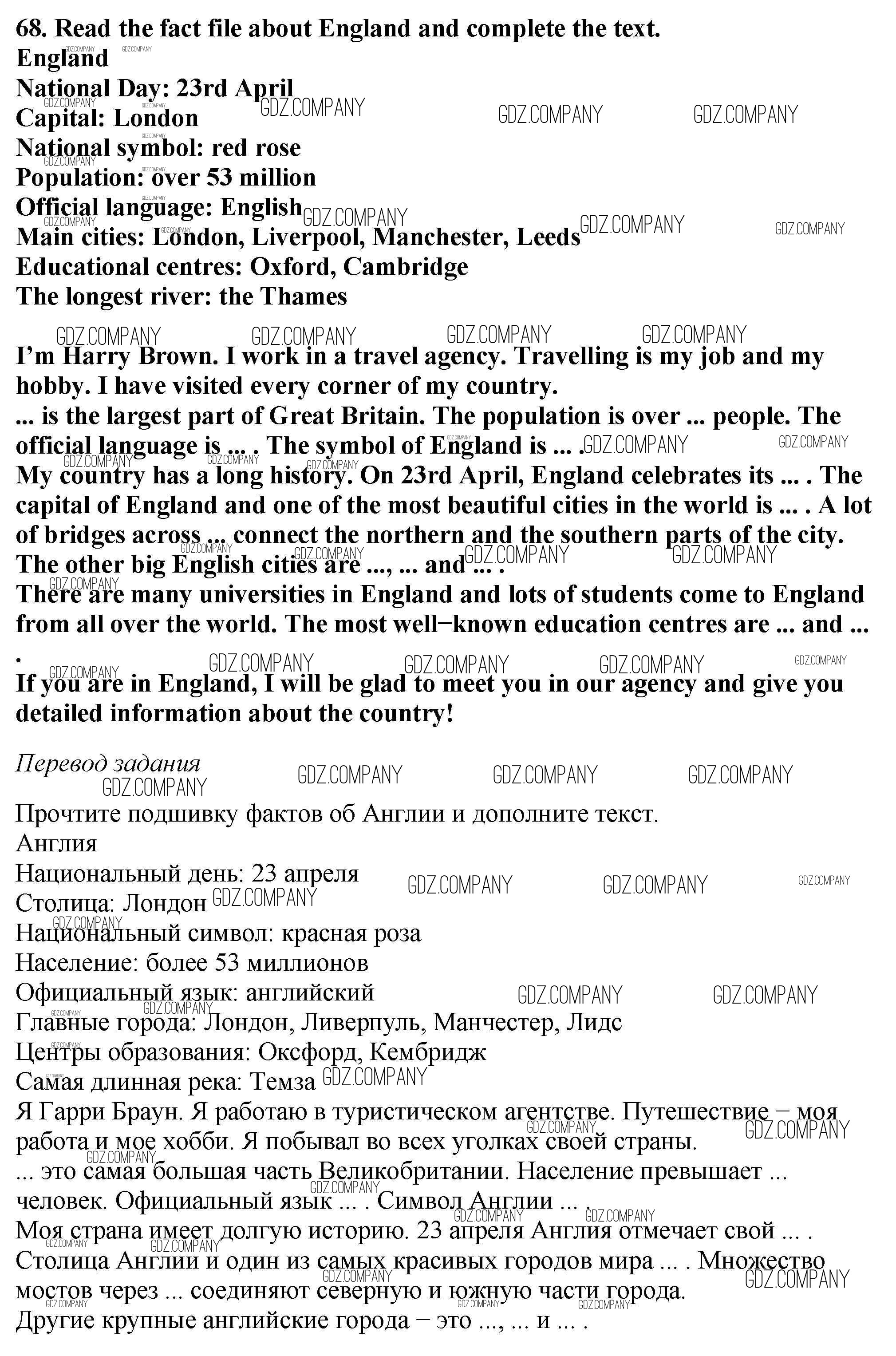 Здесь готовые ответы по Английскому языку за 6 (шестой) класс от Биболетова, Денисенко, Трубанева Учебник Enjoy English (издательство: Титул от 2015 г.) № 68