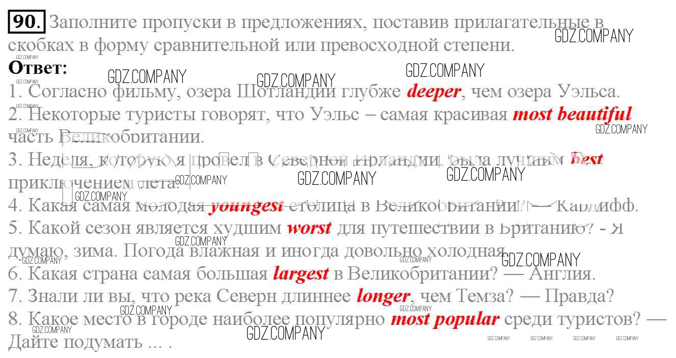 Здесь готовые ответы по Английскому языку за 6 (шестой) класс от Биболетова, Денисенко, Трубанева Учебник Enjoy English (издательство: Титул от 2015 г.) № 90