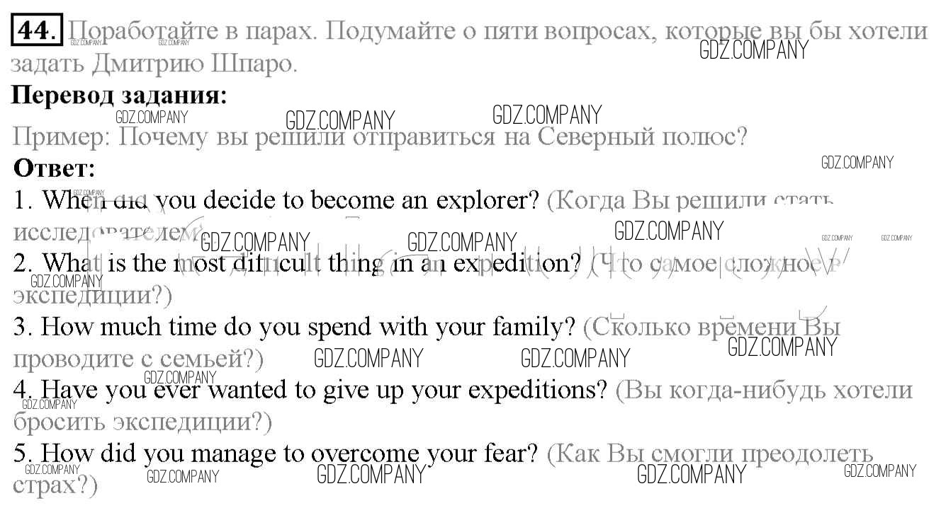Здесь готовые ответы по Английскому языку за 6 (шестой) класс от Биболетова, Денисенко, Трубанева Учебник Enjoy English (издательство: Титул от 2015 г.) № 44