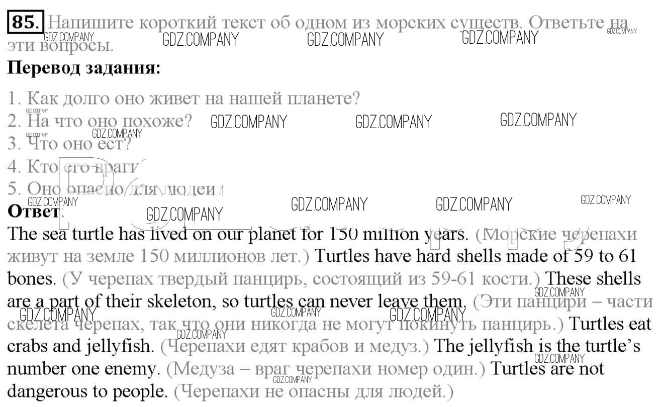 Здесь готовые ответы по Английскому языку за 6 (шестой) класс от Биболетова, Денисенко, Трубанева Учебник Enjoy English (издательство: Титул от 2015 г.) № 85